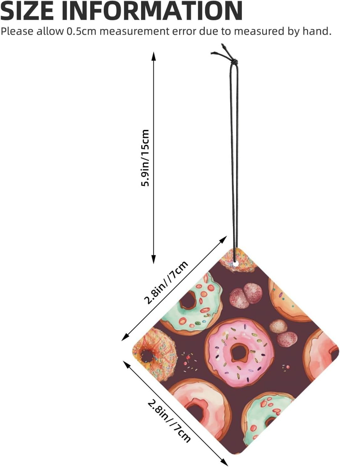 unobstructed vision: this Pretty donuts rearview mirror scented fresheners doesn't obstruct your vision while driving, ensuring a safe and comfortable journey every time.easy hang: we've included a convenient rope for hanging, making it super easy to attach this christmas air freshener wherever you prefer. No fuss, no mess - just hang and enjoy the fragrance.incredible package deal: this rearview mirror pendant aromatherapy tablets package includes 6 pieces in 6 captivating designs and 1 refreshing scents (lavender). Experience a variety of delightful fragrances that will keep your surroundings smelling wonderful throughout the day.environmental protection: the car air fresheners for women smell can last for about 1-2 weeks. When the smell fades, you can add your favorite perfume. Continue to use, reusable6 pcs included: you will receive 5 individual shoe cabinet fresheners, each in its own package; enjoy consistent scents for nearly a year, or share them with your friends or families