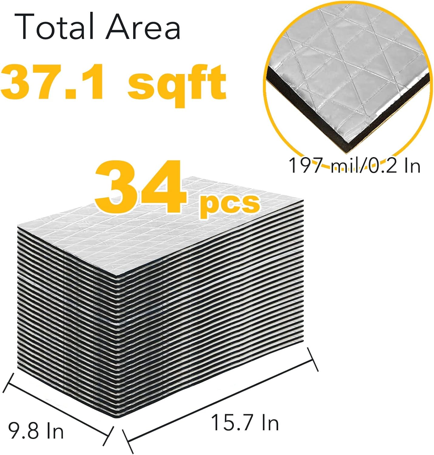 Car Sound Deadening Material Mat - 197 mil 8.7 sqft Auto Audio Deadener Foam, Sound Dampening and Heat Insulation for Truck, Vehicle