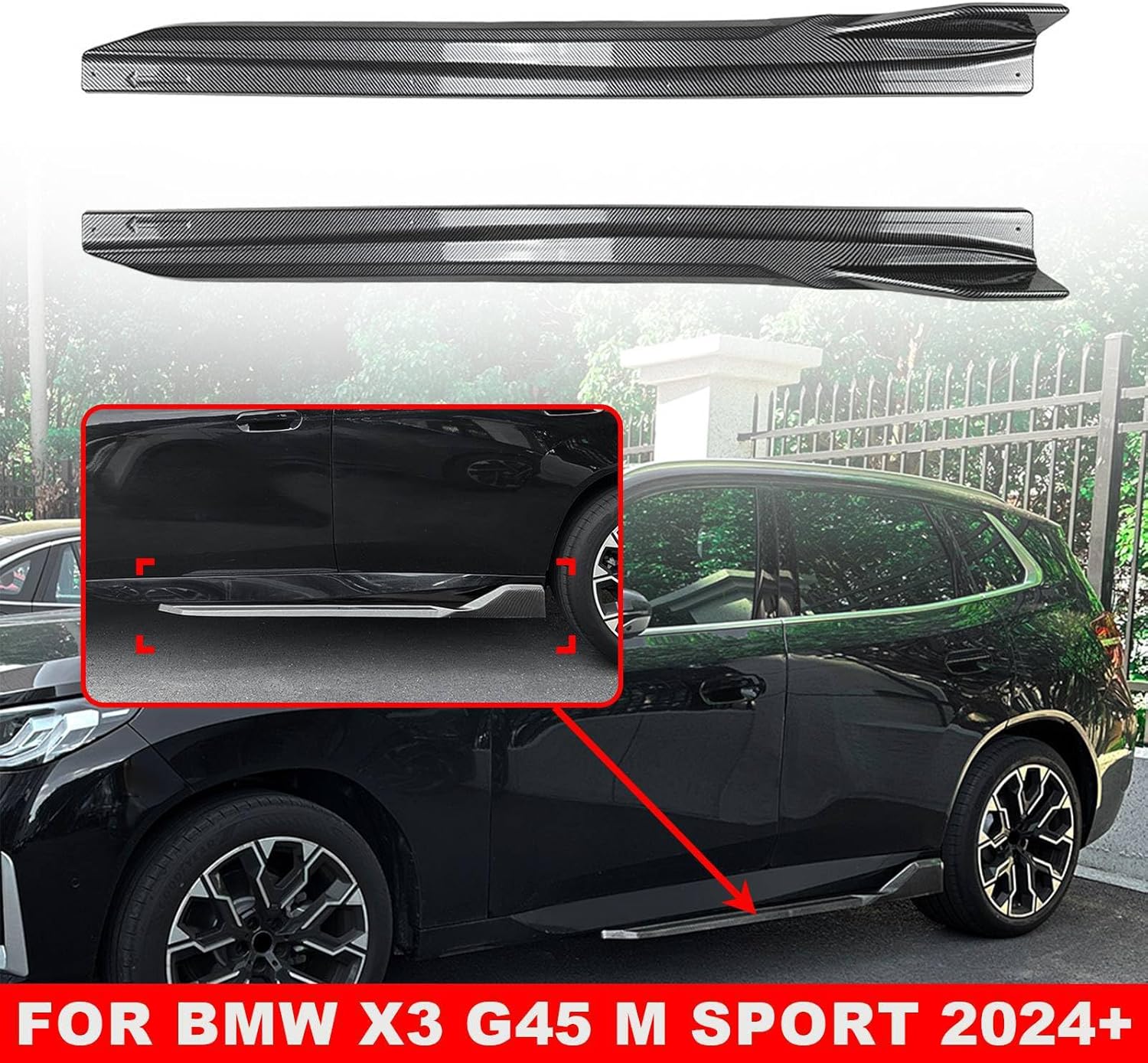 Side Skirt Extension Panel Trim Set For BMW X3 G45 M Sport 2024-2025 Carbon Look Features: 100% brand new and good quality . Strict quality control standards to Build and test. Perfect cover that is useful,helpful and so practical. It'll give you excellent look , Decorate your car charming luxury vivid. Easy install and durable use.No installation instruction included, professional installation is highly recommended! Specifications: Condition: 100% Brand New Type:Car Side Skirt Extension Color : Carbon Fiber Look Material : High Quality ABS Plastic Placement on Vehicle : Left ,Right Installation : Direct Replacement Fitment: For BMW X3 G45 M Sport 2024-2025 ( After June 2024) Package Include: 2pcs Side Skirt Spoiler Cover Trim Notes: Please kindly check you car model and make sure the model fits in case of buying the wrong product. Please allow 1-3CM differs due to manual measurement.