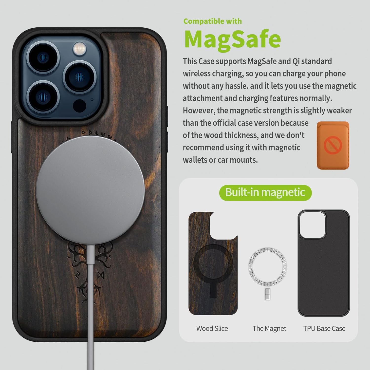 | Additional Features | Natural solid wood back panel and laser engraving, The unique solid wood keeps the palm dry and prevents fingerprints from sticking to the surface of the case, keeping it clean and elegant |