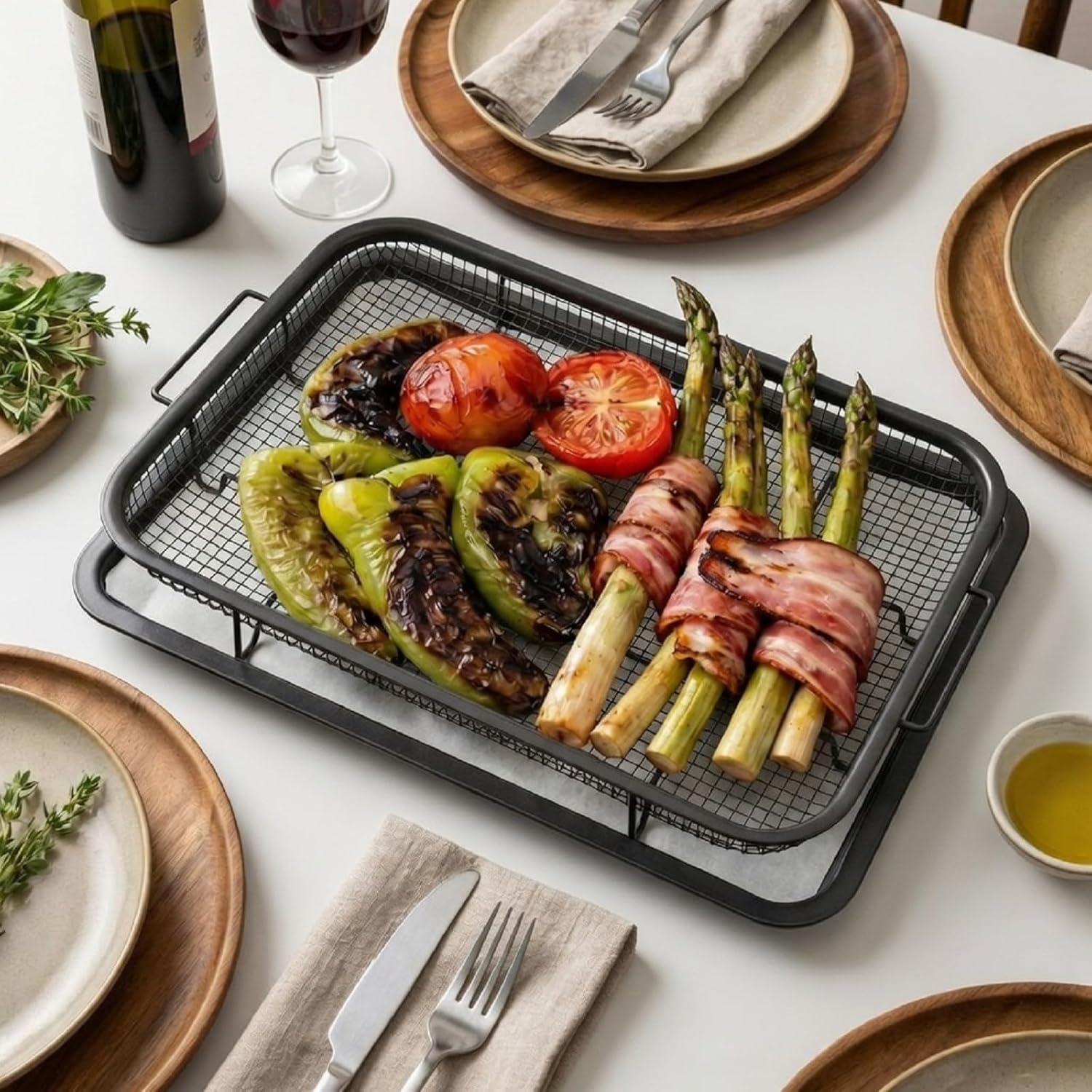 Features: Two Sizes: the two sizes of air fryer trays can be used simultaneously in some larger ovens, allowing you to cook more food at once and meet your needs when entertaining guests Specifications: Material: stainless Steel Color: black Size: Large tray is about 12.8 x 9.6 inches/ 32.51 x 24.38 cm Medium tray is about 15 x 11 inches/ 38.1 x 27.94 cm Package includes: 1x Large air fryer basket 1x Large tray 30 x Large parchment papers 1x Medium air fryer basket 1x Medium Tray 30 x Medium parchment papers Notes: Manual measurement, please allow slight errors on size. The color may exist a slight difference due to different screen displays