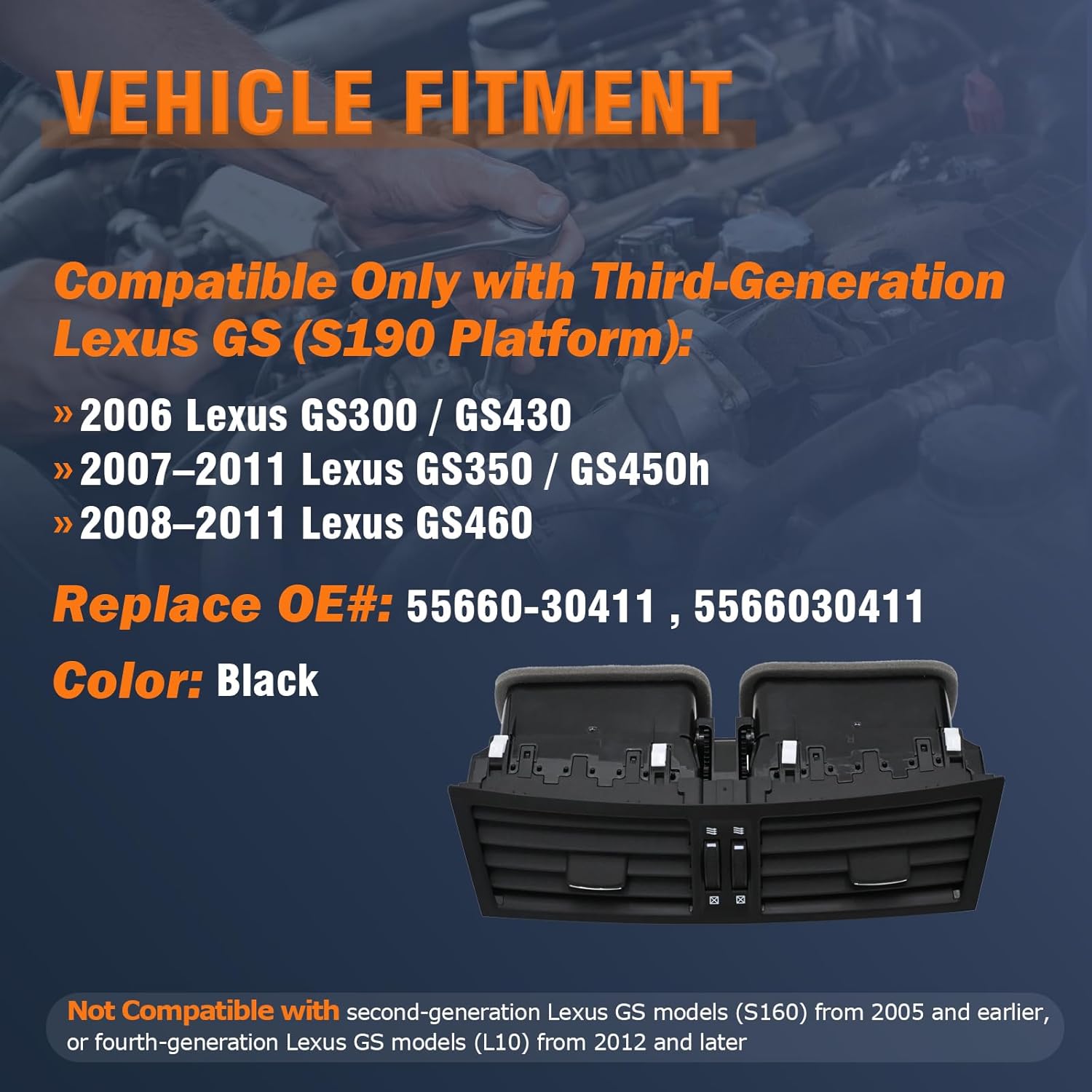 | Model | Compatible With 2006-2011 Lexus GS300 GS350 GS430 GS450h GS460 Center Dash Air Vent Outlet Assembly |