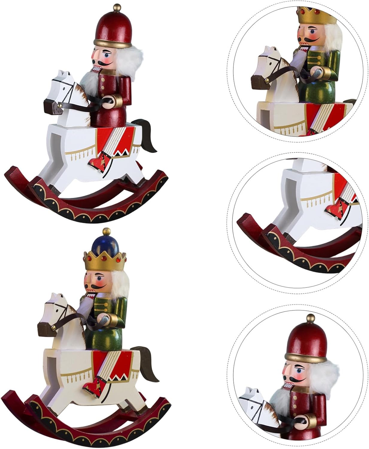 Package List 1 x Green Wooden Nutcracker Decoration 1 x Red Wooden Nutcracker Decoration Characteristics -Decorative versatility: whether as a christmas desktop nutcracker or a hanging ornament, this piece adapts to various holiday decorating needs christmas desktop nutcracker -Material:Wood -Unique design: the christmas rocking horse nutcracker statue stands out with its distinctive design, adding a touch of originality to your holiday decor christmas tree ornaments -Product Info: Nutcracker ornament -Color:Assorted Color - material: crafted from wood, this nutcracker soldier figurine offers durability and a polished finish for a sophisticated look -Compact and charming: the mini nutcracker ornaments are small yet impactful, for adding festive charm to your christmas tree or tabletop wood nutcracker hanging decor -Size:30.00X24.50X7.50cm/11.79X9.63X2.95in -Collector's delight: the xmas nutcracker collectible is a unique addition to any holiday collection, appealing to both enthusiasts and casual decorators xmas nutcracker collectibleGoods Informationrocking horse nutcracker decor for hanging on Christmas trees or as a decorative accent in any room, it brings festive cheer and a sense of tradition to your home.nutcrackers hanging ornament Its sturdy craftsmanship ensures it remains a cherished decoration for years to come.christmas nutcracker figures Elevate your holiday decor with this wooden nutcracker ornament, showcasing a delightful that captures the spirit of Christmas