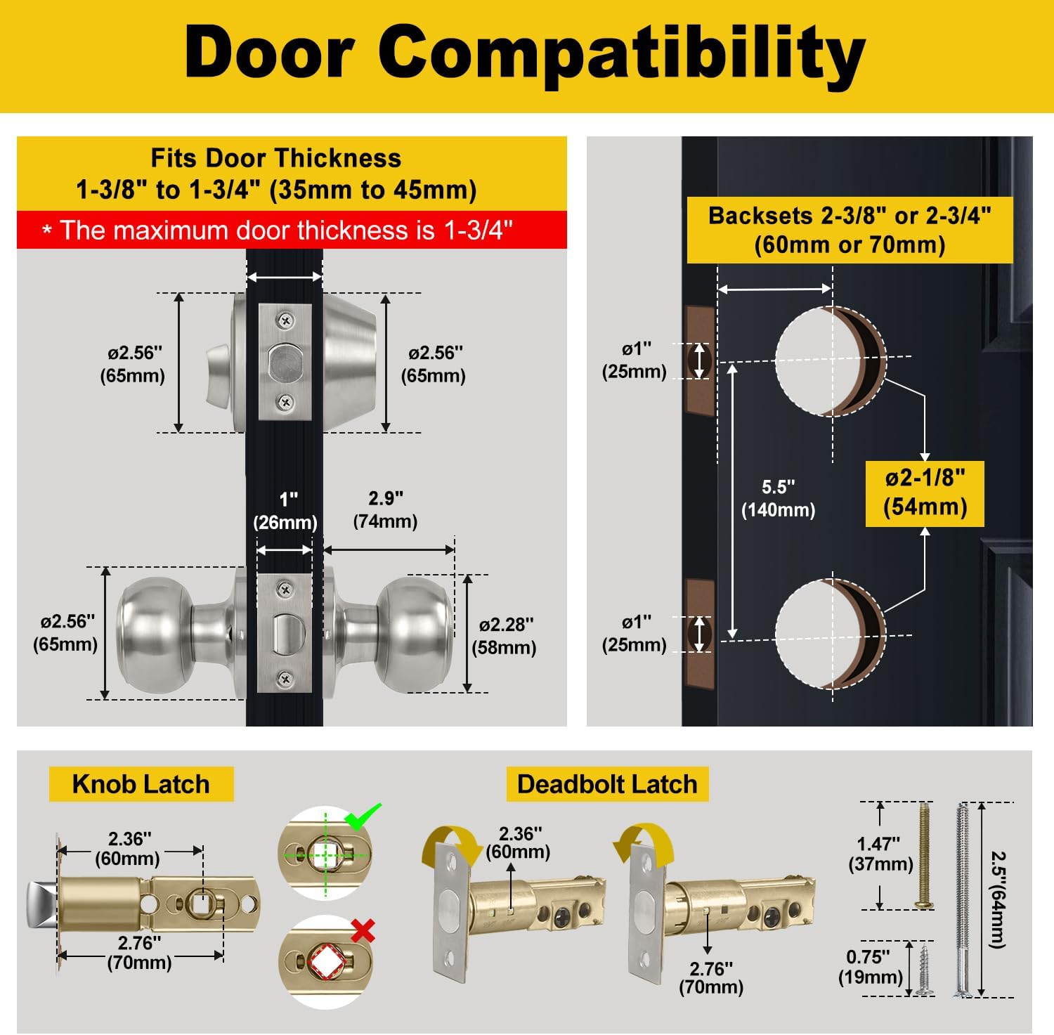 | Included Components | Deadbolt Lock, Passage Knob, Keys, Screws |