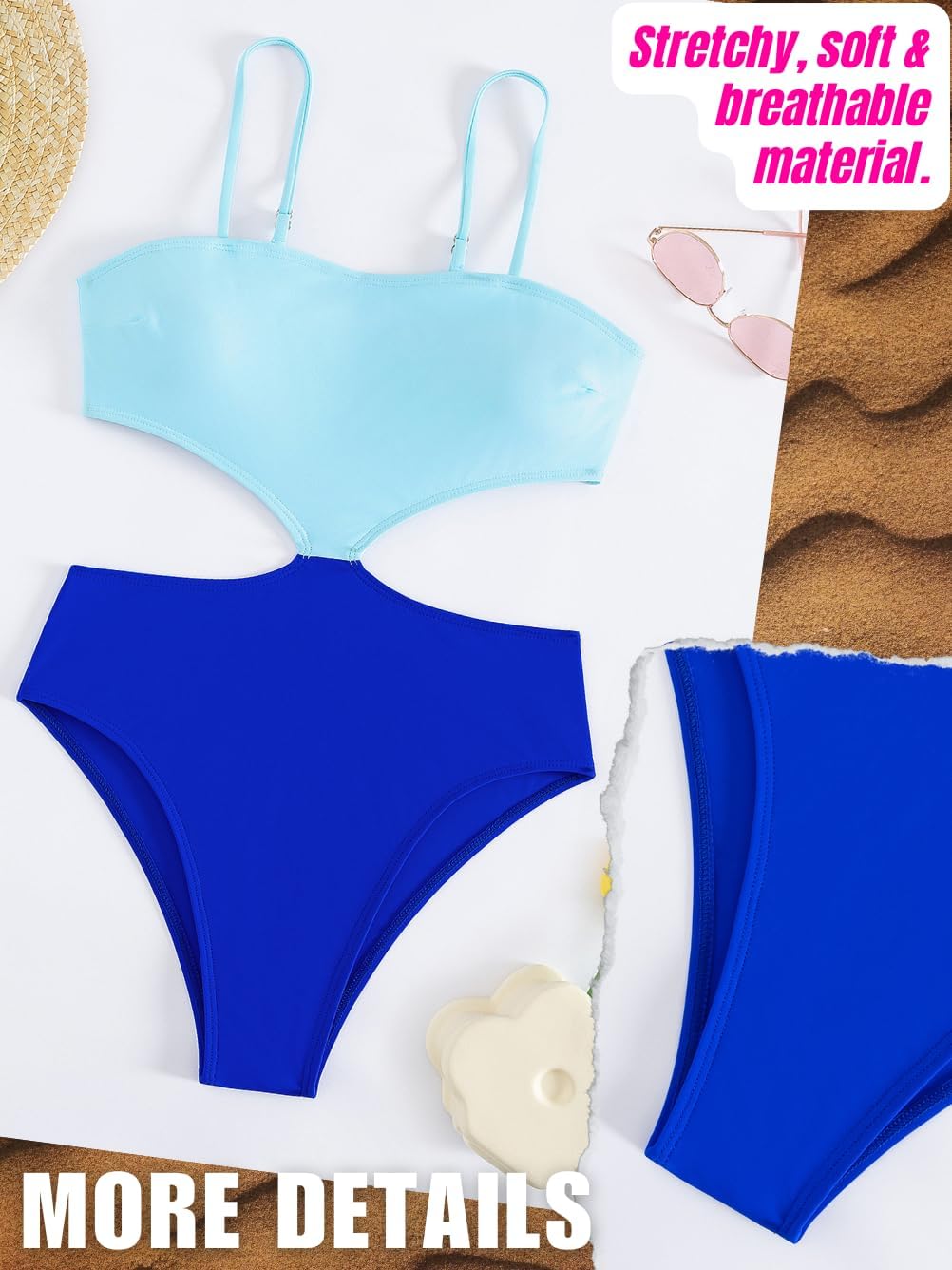Color Block Swimsuit,Cut Out Sexy Monokini Women,Cheeky One Piece Swimsuits Beach Cruise Pool Party