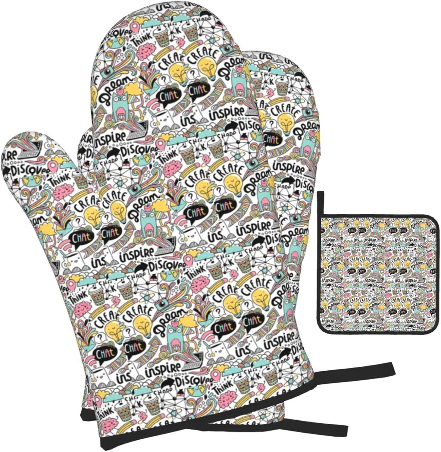 upgrade your kitchen safety with this comic ar print microwave gloves, oven mitts and pot holders sets. crafted from water repellency polyester and heat-resistant fabric, these kitchen baking three piece set offers reliable protection for hands while handling hot items. the double-layer waterproof design ensures easy cleaning after use. suitable for various cooking scenarios including microwave ovens, conventional ovens, stovetop cooking, and outdoor grilling. the side hanging rope allows convenient storage when not in use. the thick construction provides excellent heat insulation without compromising dexterity. this unisex kitchen essential combines functionality with practical design for everyday cooking needs. the heat-resistant gloves maintain comfort while offering superior protection against burns. an essential addition to any modern kitchen setup