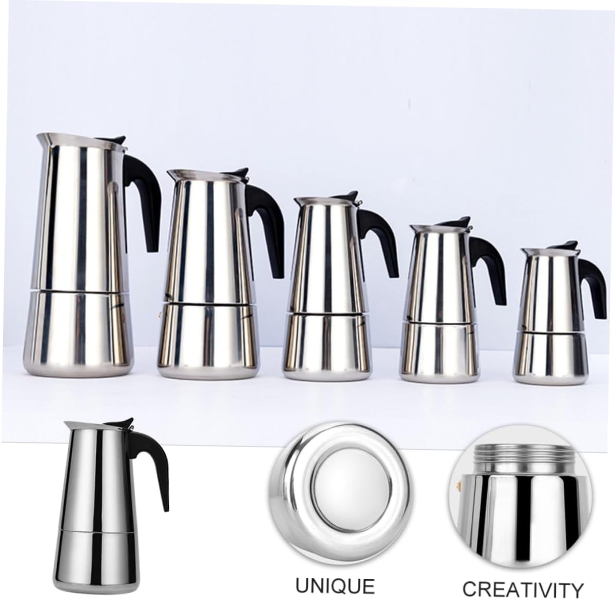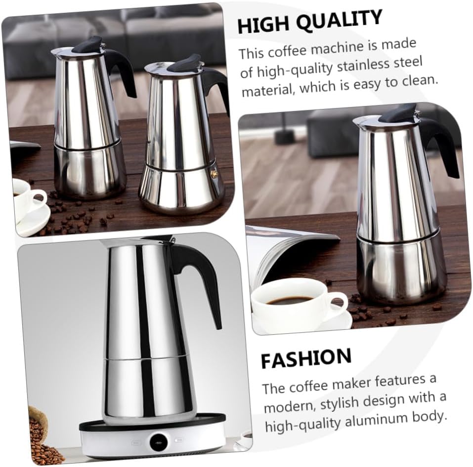 Package Include 1 x Coffee Pot Characteristics -Size: About 25.00X11.30X11.30cm/9.82X4.44X4.44in Stovetop Coffee Pot. -Color: Silver Home Coffee Pot. -Capacity: 12 Cups, 600ml Coffee Maker Pot. -Material: Stainless steel Coffee Pot. - The handle not only provides you with a firm and reliable grip, but also allows your hand to stay cool during use. Coffee Maker - Suitable for many occasions use. Can be used for home, office, etc Mocha Coffee Maker. - The coffee maker features a modern, stylish design with a high- aluminum body. Kitchen Accessories - This coffee maker can be used to make delicious coffee recipes like cappuccinos, lattes, and mochas. Coffee Utensils - The safety valves regulates the internal pressure of this pot by releasing the pressure during the brewing process Stainless Steel Coffee Maker.Goods InformationKitchen Accessories The and coffee pot allows you to brew a cup of coffee in a few minutes at home or in the office.Coffee Utensils Are you looking for a tool that could help you make coffee easier? Our coffee pot might be .Coffee Maker The process of making a delicious cup of coffee is much easier for you