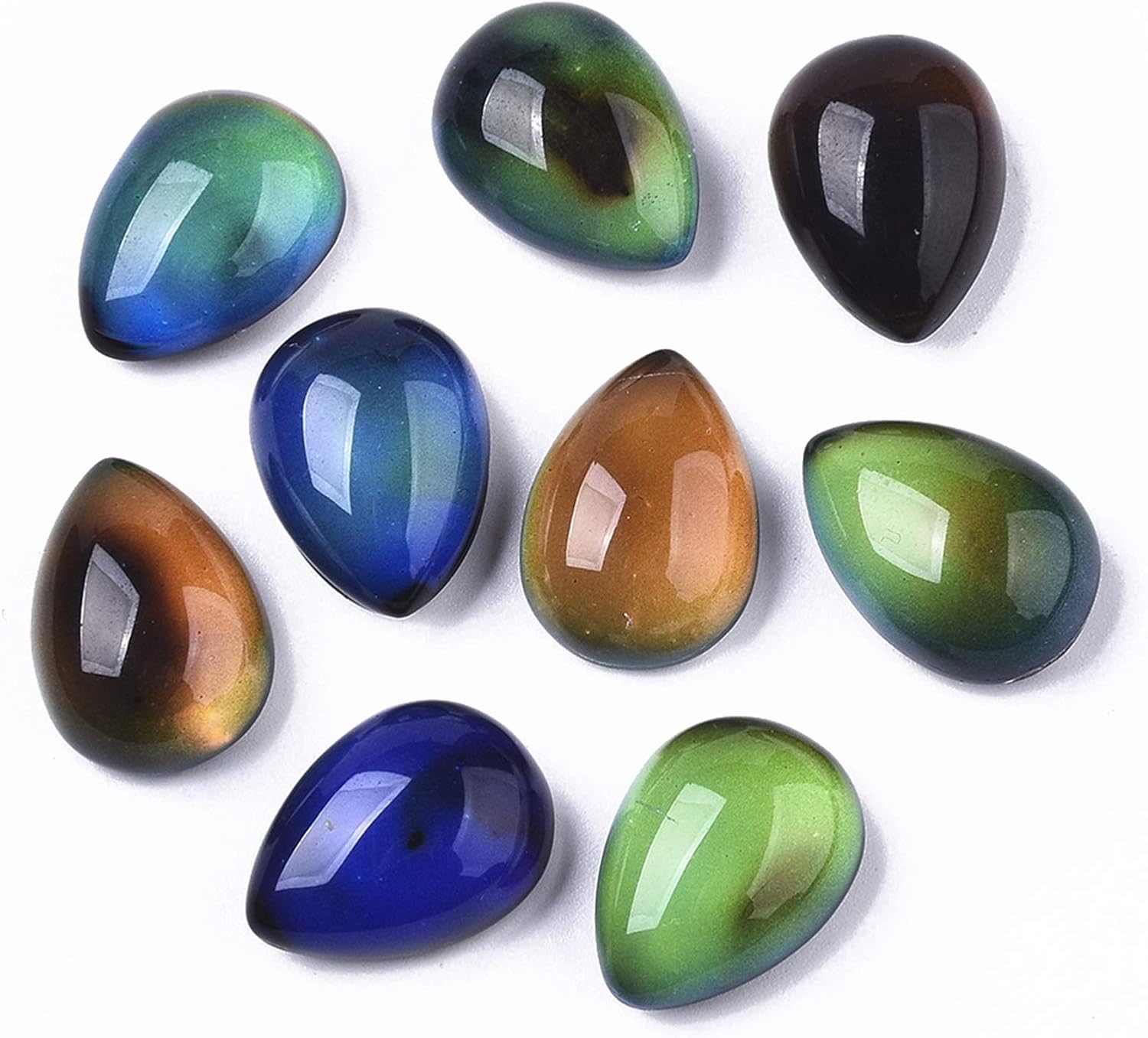 • Temperature Sensitive Cabochons-- The color of cabochons will change with your body temperature, which is great for revealing your inner emotions. They are black in normal and start to change colors above 14 degree.