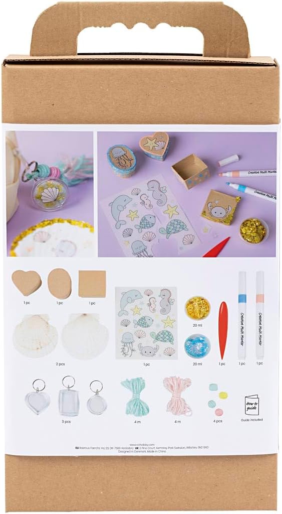 Creativ Company craft set decoration shells keychains pastel With this craft set from Creativ Company you can make the cutest accessories with an ocean theme! Let your creativity run wild and design beautiful decorations with the children, such as cute shells, cheerful boxes and unique keychains in soft pastel colours. The set contains everything you need: material for two decorative shells, three boxes and three key rings. Use glitter clay, markers and stickers to create your own treasures from the sea. The clear instructions will help you step by step, but your imagination determines the end result! Additional Information Complete ocean themed craft kitIncludes materials for shells, boxes and keychainsContains glitter clay, markers and stickersStimulates creativity and imagination