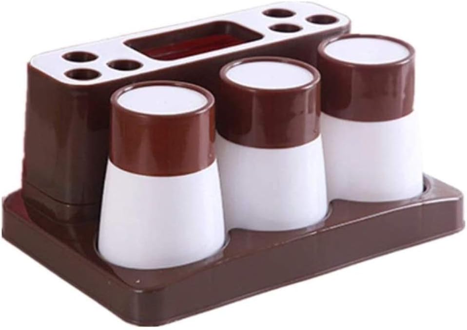 An essentials for your bathroom.Suitable for home use and travel use.Material: plasticColor: Brown, Size: 16*11*25cmPackage included: Portable Toothbrush Cup Holder。1 x Toothbrush Holder Set.Contains toothbrush holder only, no other decoration.Easy to clean : The shower toothbrush holder is easy to take apart and clean, just take the bottom piece off and rinse; The farmhouse toothbrush and toothpaste holder has an anti-slip base so it won't fall over; Each corner of the toothbrush holder set has smooth no scratches or cracks on edges