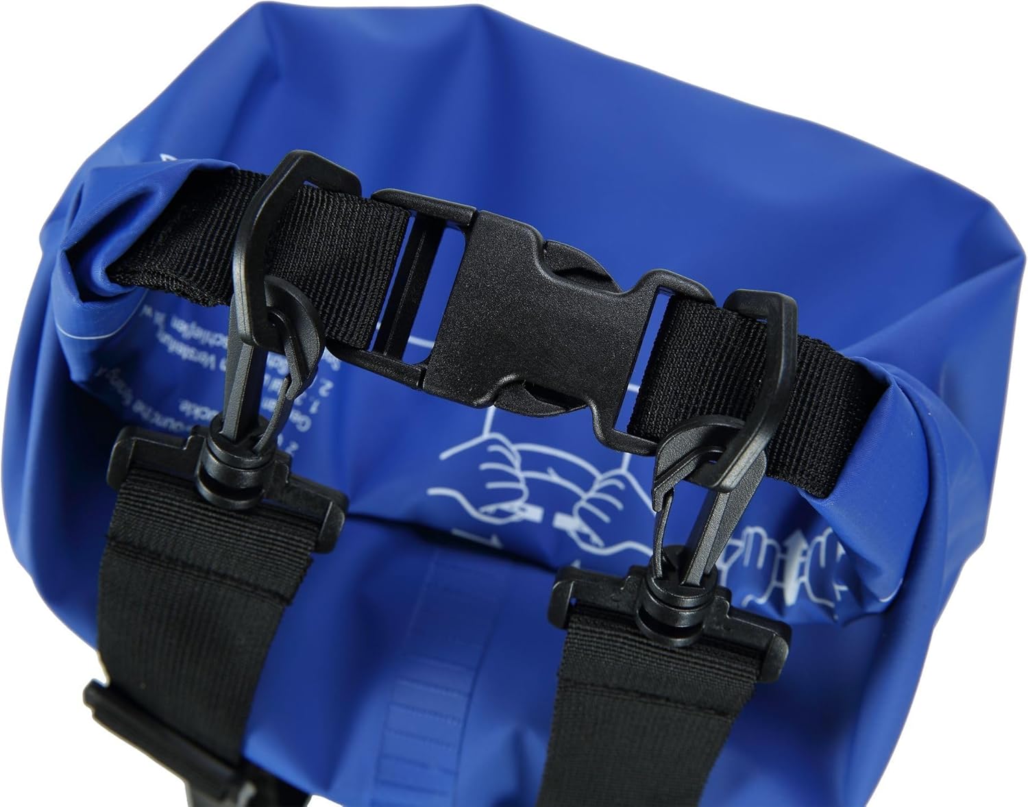 It is a good waterproof bag to protect your items and clothing from sand, dirt, water and snow. To close the bag, roll down from the top and snap the buckle. The shoulder strap makes it easy to carry, so you can carry suits, fins, masks and more when wet. Do not submerge the bag in water
