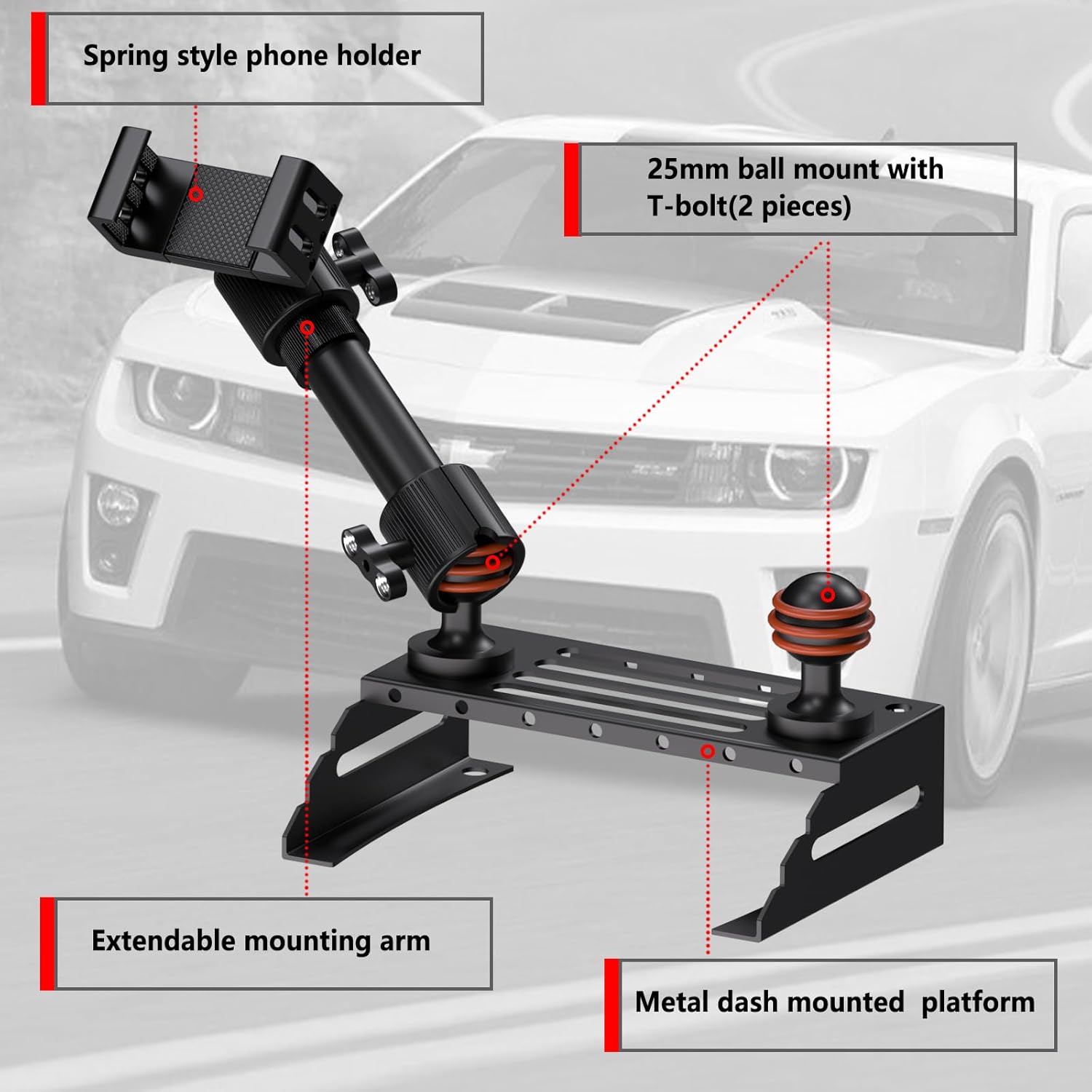 "Navigate Every Journey with Precision – The All-Metal Mount Redefines Your Drive."compatibility:√ 2015-2020 Ford F-150 including Raptor√ 2017-2022 Ford F-250, F-350, F-450 & F-550 Super Duty√ 2018-2021 Ford Expedition× NOT fit 2022 Super Duty with SYNC 4 or Tremor Off-Road Package【All-Metal Construction, Rugged Support】Laser-cut metal bracket + dual aluminum alloy ball mounts, engineered to withstand bumps and vibrations, keeping your gear steady even off-road. Standard 25mm ball heads support phones, action cameras, GPS devices, and more—ideal for navigation, recording, or capturing the adventure.【360° Adjustable, Your Perfect View】 Extendable dual-arm design (6-8 inches adjustable) for optimal positioning. Two 25mm aluminum ball mounts rotate freelySpring-loaded phone grip fits devices 1.9-3.7 inches wide (up to 0.78" thick), secure and scratch-free.
