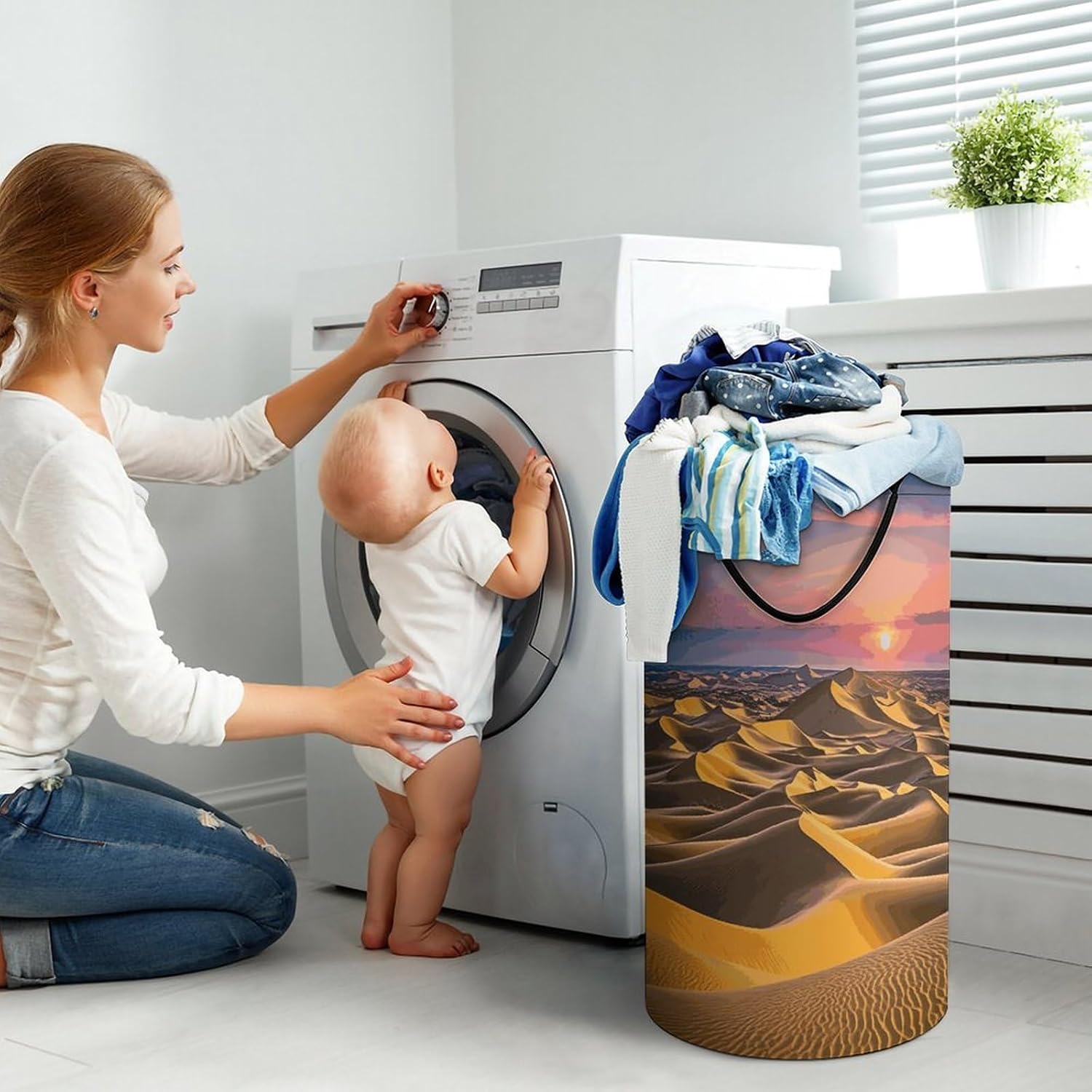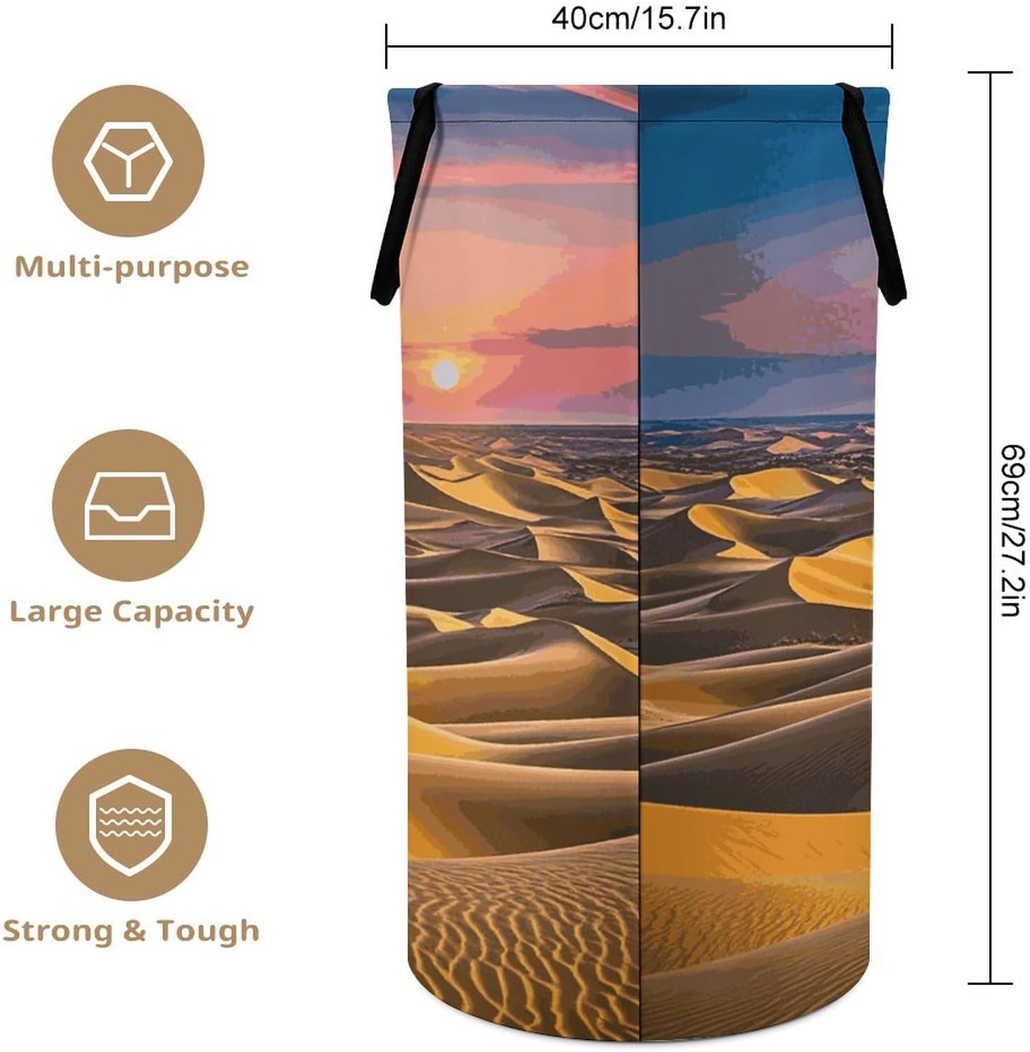 Tired of messy piles of dirty clothes cluttering your bedroom, bathroom, or laundry room? Meet your new organizational essential: the Large Collapsible Laundry Hamper, designed to blend functionality, and style seamlessly into your daily life. Whether you're a busy parent, or a frequent traveler, this versatile hamper Dirty clothes hamper clothes hampers for laundry Large Tall Clothes Basket Bin Decor Storage of Dirty Clothes is crafted to simplify your routine and elevate your space.With its generous size, this hamper easily handles a week's worth of laundry for individuals or small families, eliminating the hassle of multiple trips to the washing machine. From bulky sweaters and bed linens to towels and clothes, Removable Laundry Bags Laundry Hamper Bag Large Laundry Basket effortlessly accommodates all types of fabrics. Say goodbye to overflowing baskets and hello to a tidier, more organized home.More than just a Foldable Washing Bin Collapsible Laundry Bag Desert Landscape laundry basket, this hamper adds a touch of modern elegance to any room. Its neutral, minimalist design complements bedrooms, bathrooms, closets, RVs, campers dorms. Use Waterproof Washing Bin Decorative Tall Hamper Large Storage Basket to store blankets, or seasonal items, its versatility knows no bounds.
