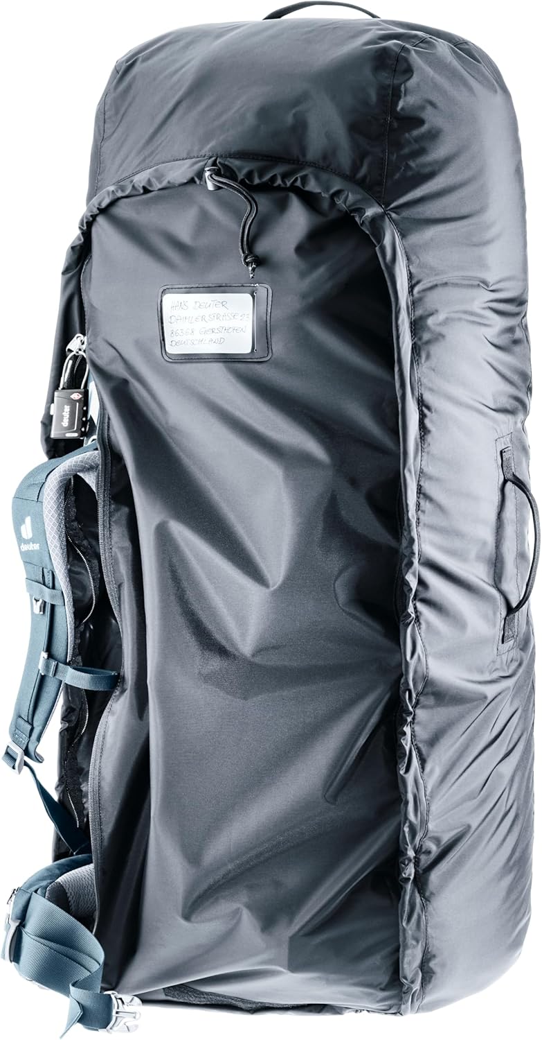 This transport cover from deuter easily fills a double roll: When closed, it protects the rucksack during the flight. When the zip on the back is open, it serves as a rain cover.
