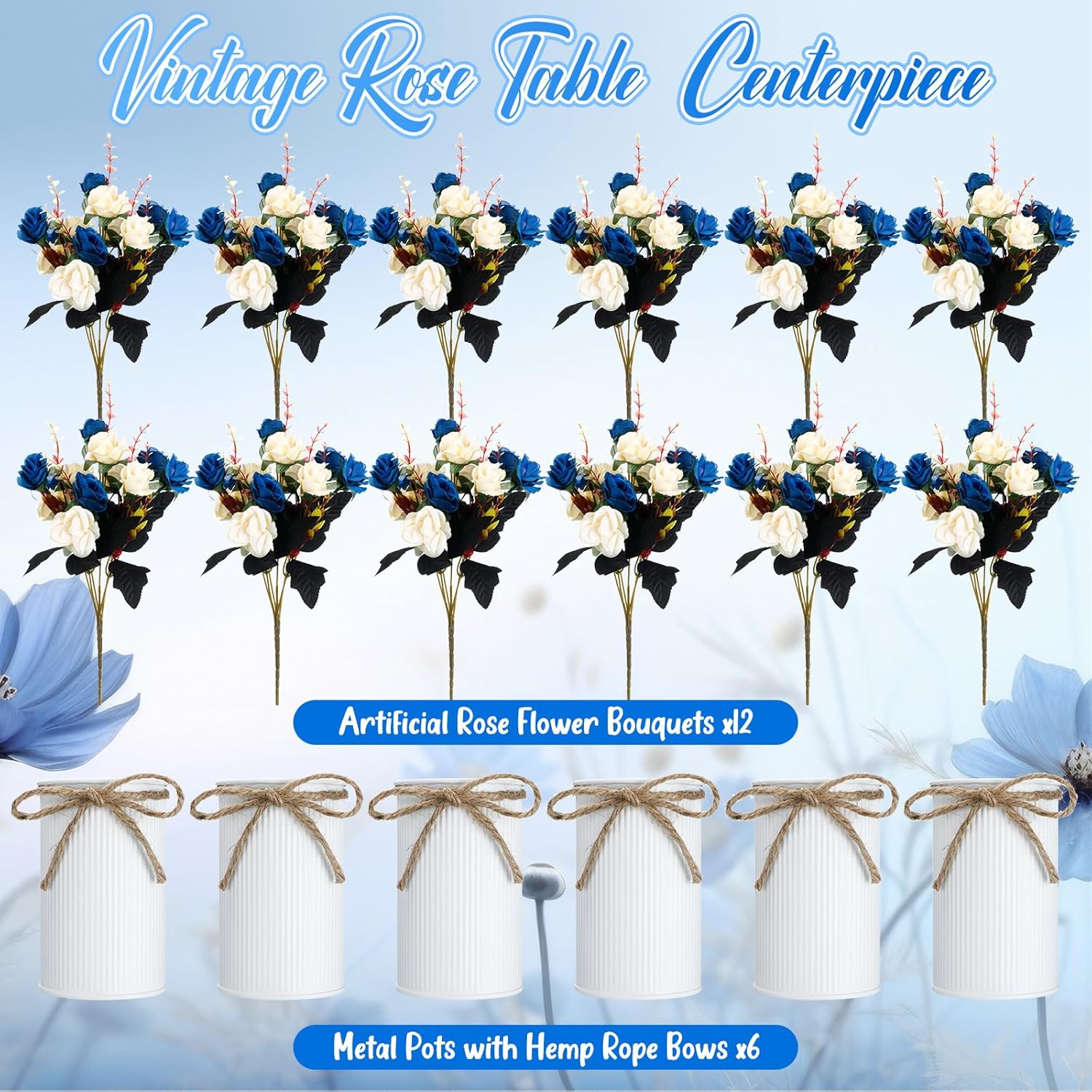 | Included Components | 12 x Metal pots, 24 x Artificial rose bouquet |