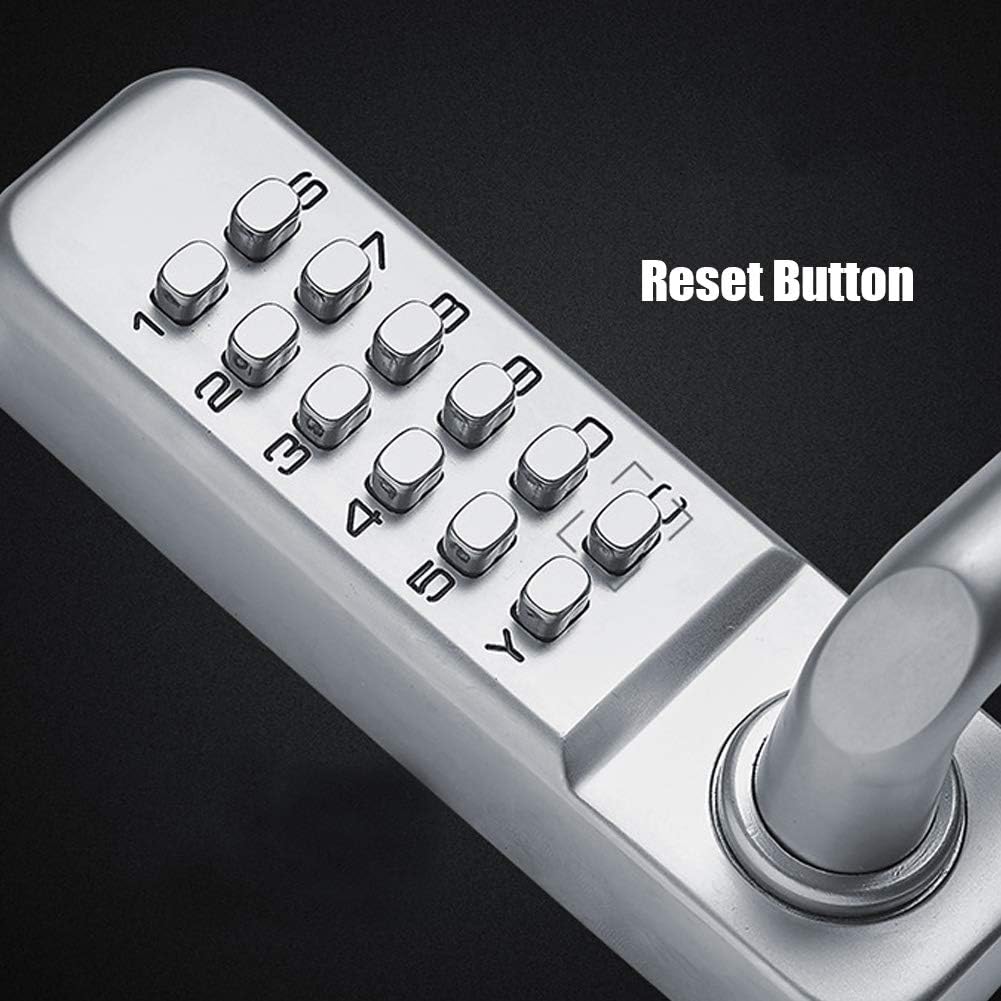 Item Type: Door LockMaterial: Zinc AlloyPassword Length: 1-11 DigitsApplicable Environment: Waterproof, High Temperature ResistantApplicable Type: Indoor/Outdoor DoorFunction: No need for battery or wired powerWeight: Approx. 1415g / 49.9ozApplicable Door Thickness: 30-60mm/1.18-2.36inProduct Size: Approx. 142x42x25mm / 5.6x1.7x1.0inRubber Sealing Size: Approx. 148x50mm / 5.8x2.0inRubber Sealing Hole Diameter: Approx. 10mm / 0.4inDistance between rubber sealing hole diameter and hole diameter center point: Approx. 130mm / 5.1inBolt Size 1: Approx. 87x60x67mm / 3.4x2.4x2.6inBolt Size 2: Approx. 27x25x15mm / 1.1x1.0x0.6inPackage List:2 x Door Lock Panel2 x Rubber Mat1 x Bolt4 x Screw3 x Stud1 x Main Pin with Spring1 x Bag of Bump Plates (2Pcs)1 x English ManualNote:1.Please allow 0‑1 inch error due to manual measurement. Thanks for your understanding.2.Monitors are not calibrated same, item color displayed in photos may be showing slightly different from the real object. Please take the real one as standard.