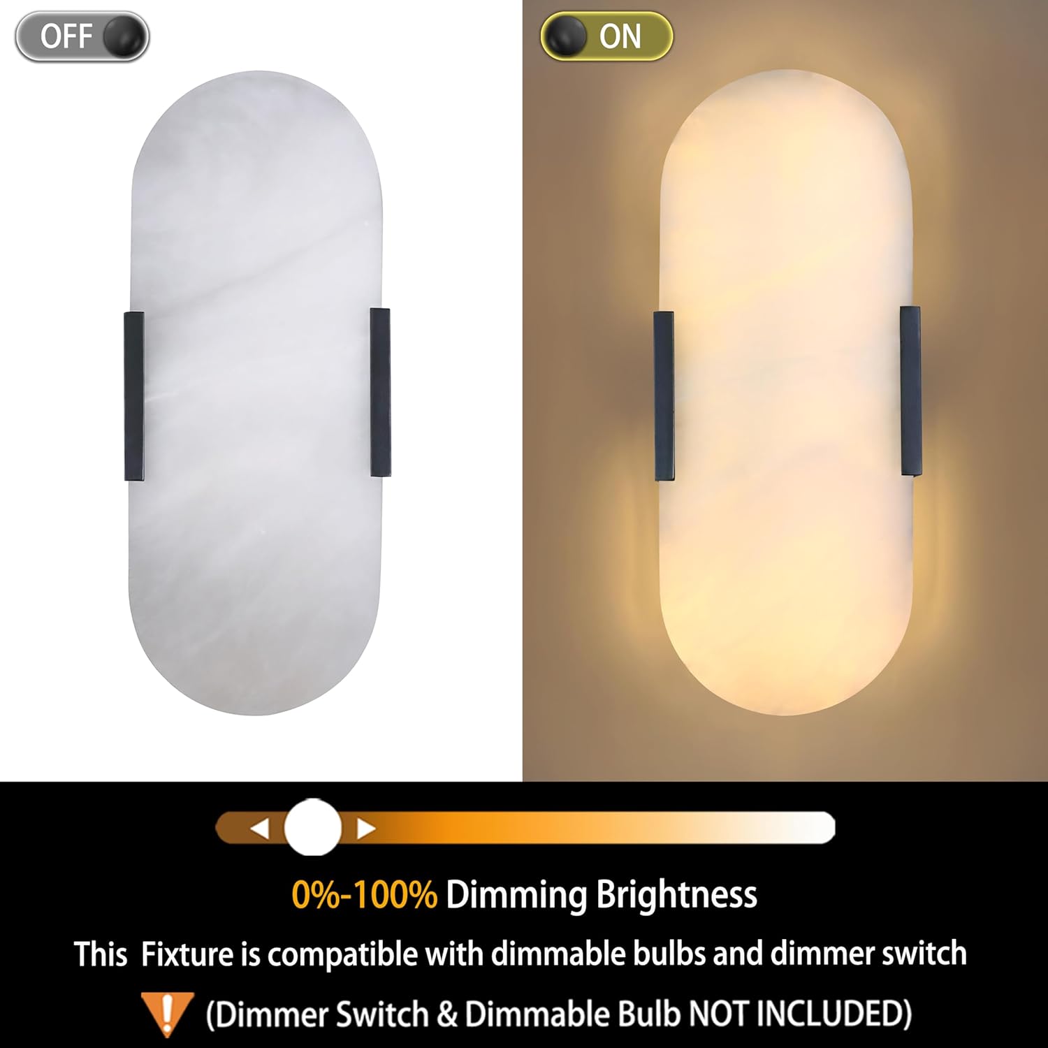 2 Light 12" Natural Square Alabaster Bathroom Wall Sconce Modern Concise Style Wall Light Fixture,Oil Rubbed Bronze Finish for Bedroom Hallway Bedside Living Room