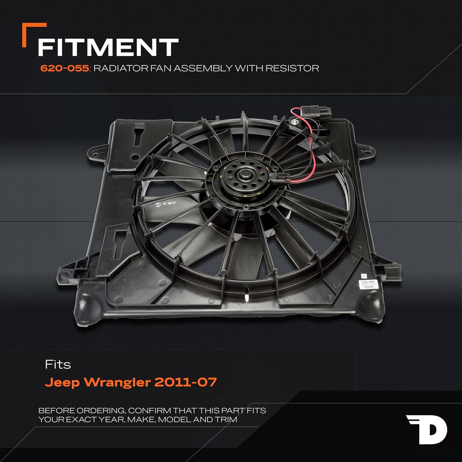 This engine cooling fan assembly is precision-engineered to match the fit and performance of the stock radiator fan on specific vehicle years, makes and models. It has been rigorously tested to ensure it cools as effectively as the original part. This part is compatible with the following vehicles. Before purchasing, enter your vehicle trim in the garage tool to confirm fitment. [Jeep Wrangler: 2007, 2008, 2009, 2010, 2011]