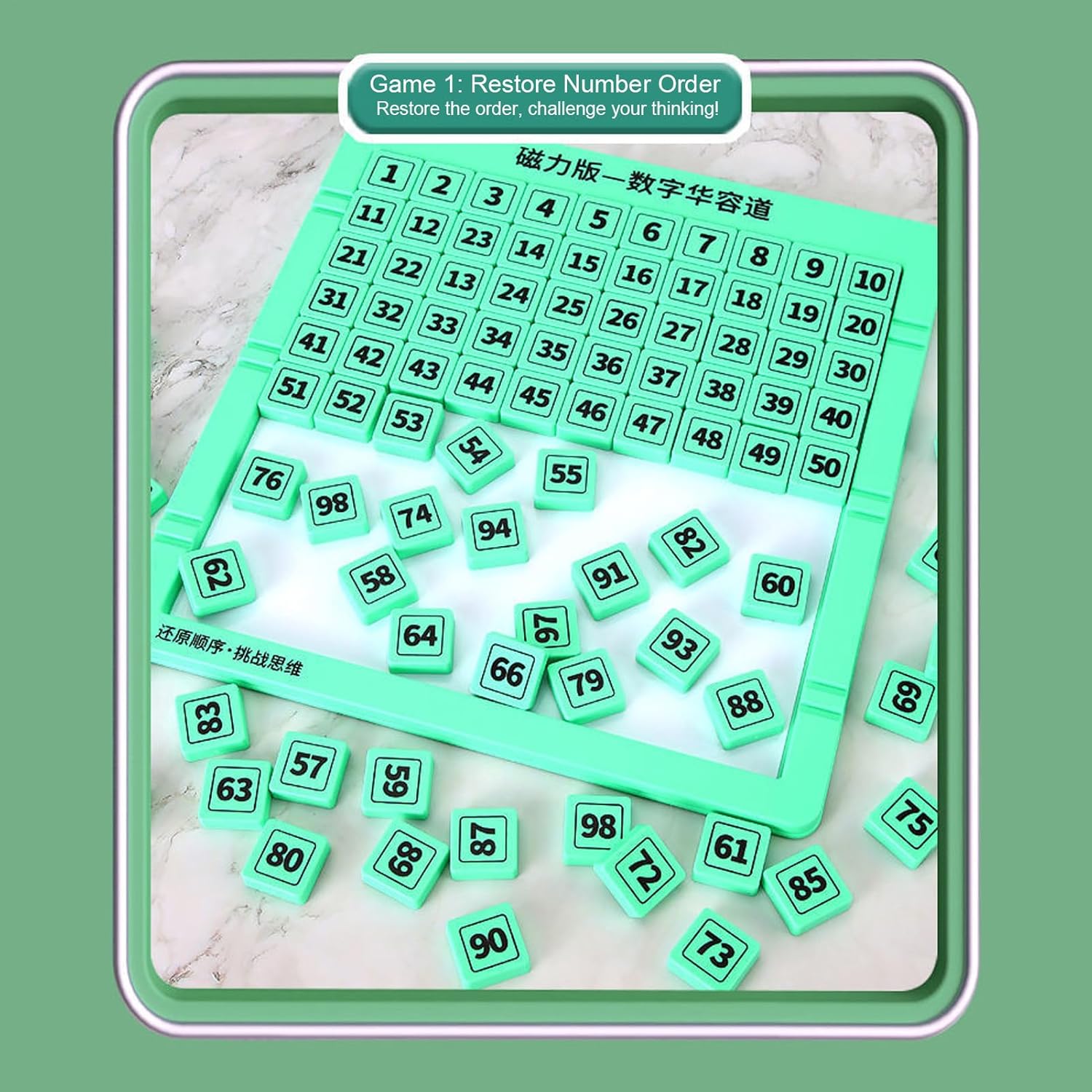 Featuring magnetic blocks, this puzzle enhances counting skills while providing a stimulating challenge for boys, teens, and adults alike. Its compact design makes it ideal for travel, ensuring entertainment during long journeys or holiday celebrations like Easter and Christmas. As a learning aid, this slider puzzle fosters critical thinking and problem-solving abilities in a fun and interactive way. Whether used at home or on the go, it serves as a perfect gift for various occasions, blending education with recreation seamlessly. The combination of magnetic functionality and numerical sequencing ensures repeated use for both casual play and structured learning experiences. Discover the joy of solving this brain teaser while sharpening mathematical understanding during holidays or daily routines.SpecificationProduct name: Slide Puzzle Material: ppProduct Size: Number board: 25.5*24.8*1cm/ 10*9.76*0.315 inWeight: 500gColor: green, wood colorListSlide Puzzle x1Pen x1 (Random color)Number chess piece x100 ( Including numbers from 1 to 99, and a blank piece for DIY )Note:1. Due to lighting effects and display angles, there may be color differences in the product.2. Due to manual measurement, there may be errors in product size, please understand.
