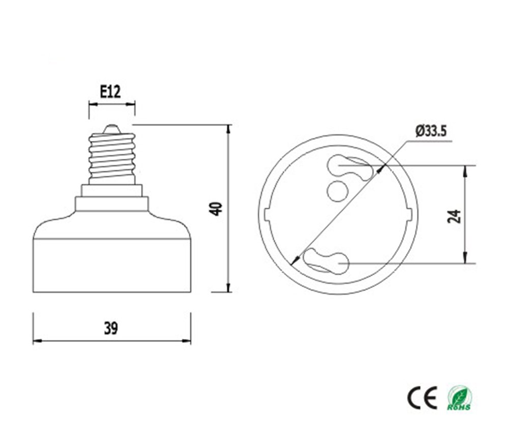 E-Simpo15-pack E12 to Gu24 Adapter, E12 to Gu24 Lamp Base Converter, Z1039 Working voltage: 100-250V AC E12 to Gu24 Adapter. E12 Base Male side, Gu24 Holder Female Side, Allow you install Gu24 into E12 Socket/Fixture Working Voltage: All Voltage Workable Physically Change the contact, DON'T Change Any Voltage nor Current. Flame-Retardant PBT, Copper Contact CE Rohs