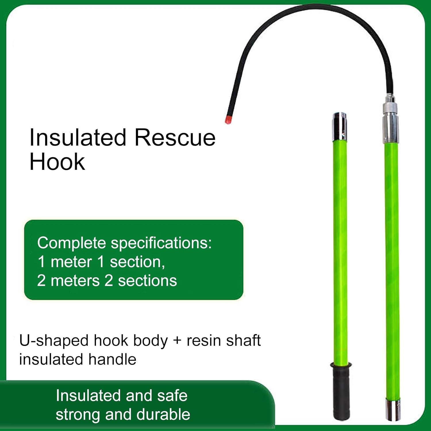 The insulated rescue hook is a tool designed for safe power rescue operations. Constructed from high-strength insulating materials, it allows for the secure hooking and pulling of live lines or equipment, minimizing the risk of electric shock and ensuring rescuer safety.Features and Advantages1. Ensures operator safety in live working environments.2. Effectively removes individuals from hazardous areas, enhancing rescue outcomes.3. Versatile application across power systems, industrial production, high-voltage testing, education, maritime operations, rescue missions, mining, petroleum, power plants, factories, hospitals, and laboratories.4. Simple and quick operation enables rescuers to assist electrocuted or incapacitated individuals by using the operating rod.Product ParametersProduct name: Insulated rescue hook/insulated rodMaterial: Epoxy resin rod/insulated handleDiameter: 32mm (1.25in)Body load capacity: >80kg (176lbs)U-shaped opening: 37cm (14.5in)Pole length options:→1m/39.4in/3.3ft - suitable for 10kV fixed voltage→2m/78.7in/6.5ft - consists of 2 parts, suitable for 110kV voltageProduct material: Epoxy resinUsage: Designed to pull the waist or armpit of an electrocuted individual during operations.