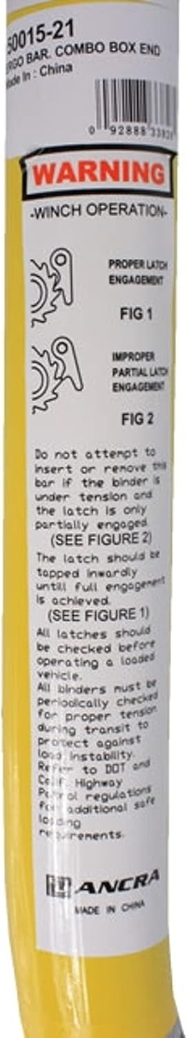 The ERGO 360 Winch Bar with Combination Square End from US Cargo Control is the ideal safe solution to problems tightening winches. The 38 inch combo winch bar is made of heat-treated alloy steel to give it high strength and resiliency from other winch bars. This combination winch bar also has a unique design that provides powerful leverage at multiple angles and reduces the risk of injuring the back or neck during the tightening process. Each end of the wench bar works to ease releasing tension on winches and load binders: the square head on the top end of the binder bar adds a layer of protection when tightening or releasing tension from lever chain binders, while the angular hollowed tip of the ratchet tightening bar fits into any standard winch and locks in place during the tie down process. Using either end when tying down cargo provides a safer option with better leverage than a regular winch bar. These ratcheting cargo bars for semi trailers are also made with knurled handles for better grip and control during the tie down process. US Cargo Control's ERGO 360 Winch Bar with Combination Square End makes the job of tightening and releasing winch straps much safer and easier than ever before.