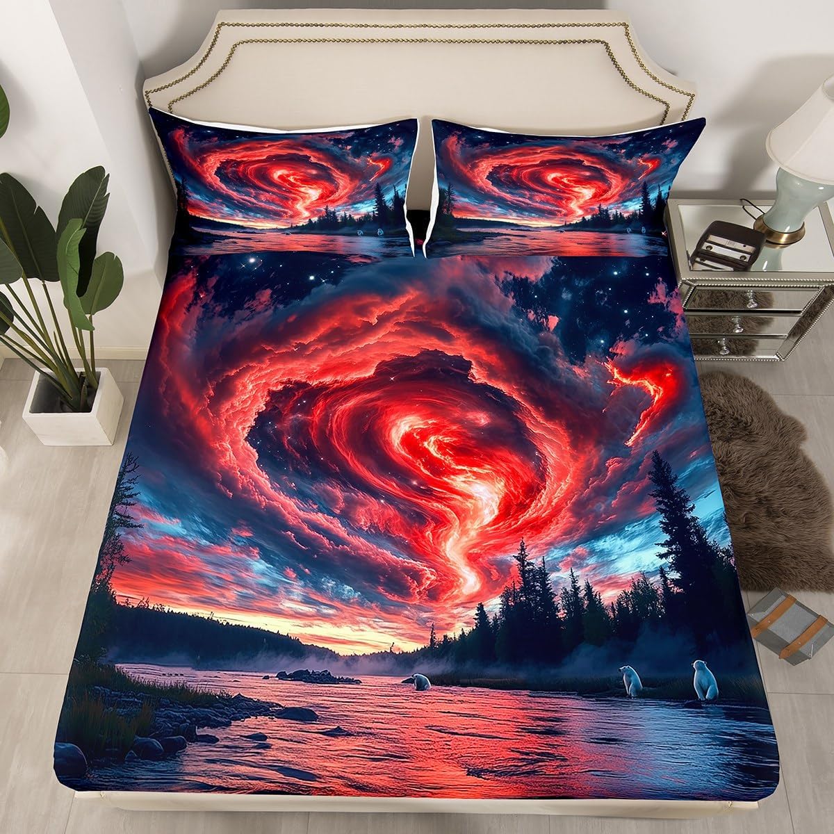 Size Information Twin size: 1 Fitted Sheet 39"Wx75"Lx16"H and 1 Pillowcase 20"Wx30"L. Full size: 1 Fitted Sheet 54"Wx75"Lx16"H and 2 Pillowcases 20"Wx30"L. Queen size: 1 Fitted Sheet 60"Wx80"Lx16"H and 2 Pillowcases 20"Wx30"L. Versatility We have many kinds of styles for you to choose. You can easily find a product that suits the style of your room. The item is not only suitable for your home, bedroom, guest room, living room, or rv, your families, friends, relatives, boyfriend, girlfriend. Modern Design The luxury aesthetic bedding set is made reactive printing and dyeing process. The pattern is clear, the color is bright, which will not fade after repeated washing. Personalized As a manufacturer of digital printed home textiles, we follow current trends and bring you the latest and stylish home textile products. The item will make the room decorated in exquisite taste.