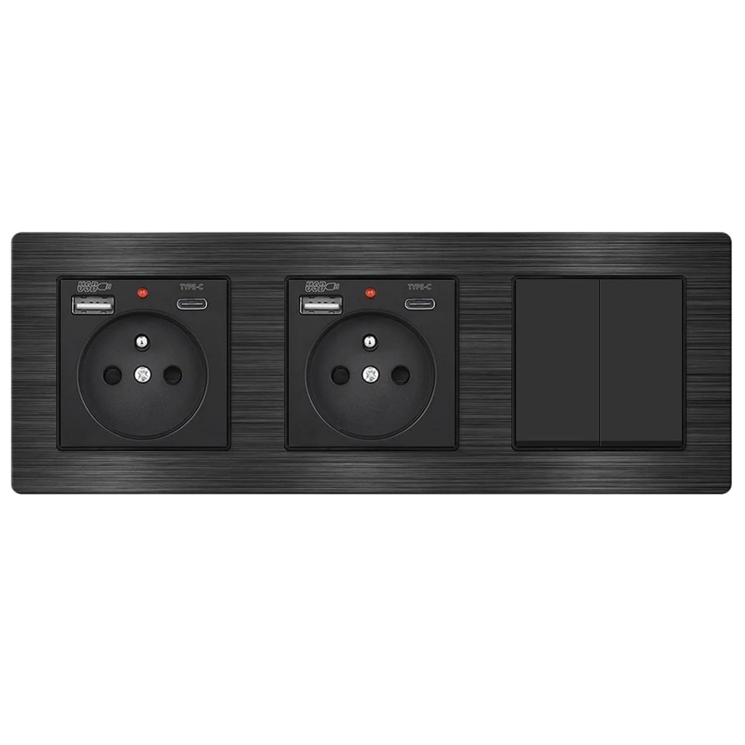 Standard Outlets==========Hign-concerned Chemical : NoneMaterial : MetalSocket Type : USBInstallation Type : Wall EmbeddedIs Smart Device : NoFeatures : With USB PortsExtension Cable Length : NoneShape : RectangularRated Current : 16AGrounding : Standard GroundingApplication : Residential / General-PurposeOrigin : Mainland ChinaCertification : CE,RoHSStandard : 82/153/224/295mm*82mmFeature1 : EU standard socket with usb cFeature2 : socket with dustproof coverUSB C Output : 5V 2.1AInput Voltage : AC 110~250VInput frequency : 50HZ~60HZMounting hole distance : 60mmBox : Suitable for European standard round boxesPanel material : Aluminum Alloy panel