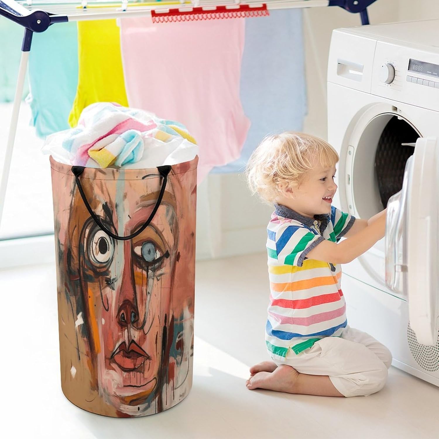 Tired of messy piles of dirty clothes cluttering your bedroom, bathroom, or laundry room? Meet your new organizational essential: the Large Collapsible Laundry Hamper, designed to blend functionality, and style seamlessly into your daily life. Whether you're a busy parent, or a frequent traveler, this versatile hamper Dirty clothes hamper clothes hampers for laundry Large Tall Clothes Basket Bin Decor Storage of Dirty Clothes is crafted to simplify your routine and elevate your space.With its generous size, this hamper easily handles a week's worth of laundry for individuals or small families, eliminating the hassle of multiple trips to the washing machine. From bulky sweaters and bed linens to towels and clothes, Removable Laundry Bags Laundry Hamper Bag Large Laundry Basket effortlessly accommodates all types of fabrics. Say goodbye to overflowing baskets and hello to a tidier, more organized home.More than just a Foldable Washing Bin Collapsible Laundry Bag Face with Eyes laundry basket, this hamper adds a touch of modern elegance to any room. Its neutral, minimalist design complements bedrooms, bathrooms, closets, RVs, campers dorms. Use Waterproof Washing Bin Decorative Tall Hamper Large Storage Basket to store blankets, or seasonal items, its versatility knows no bounds.