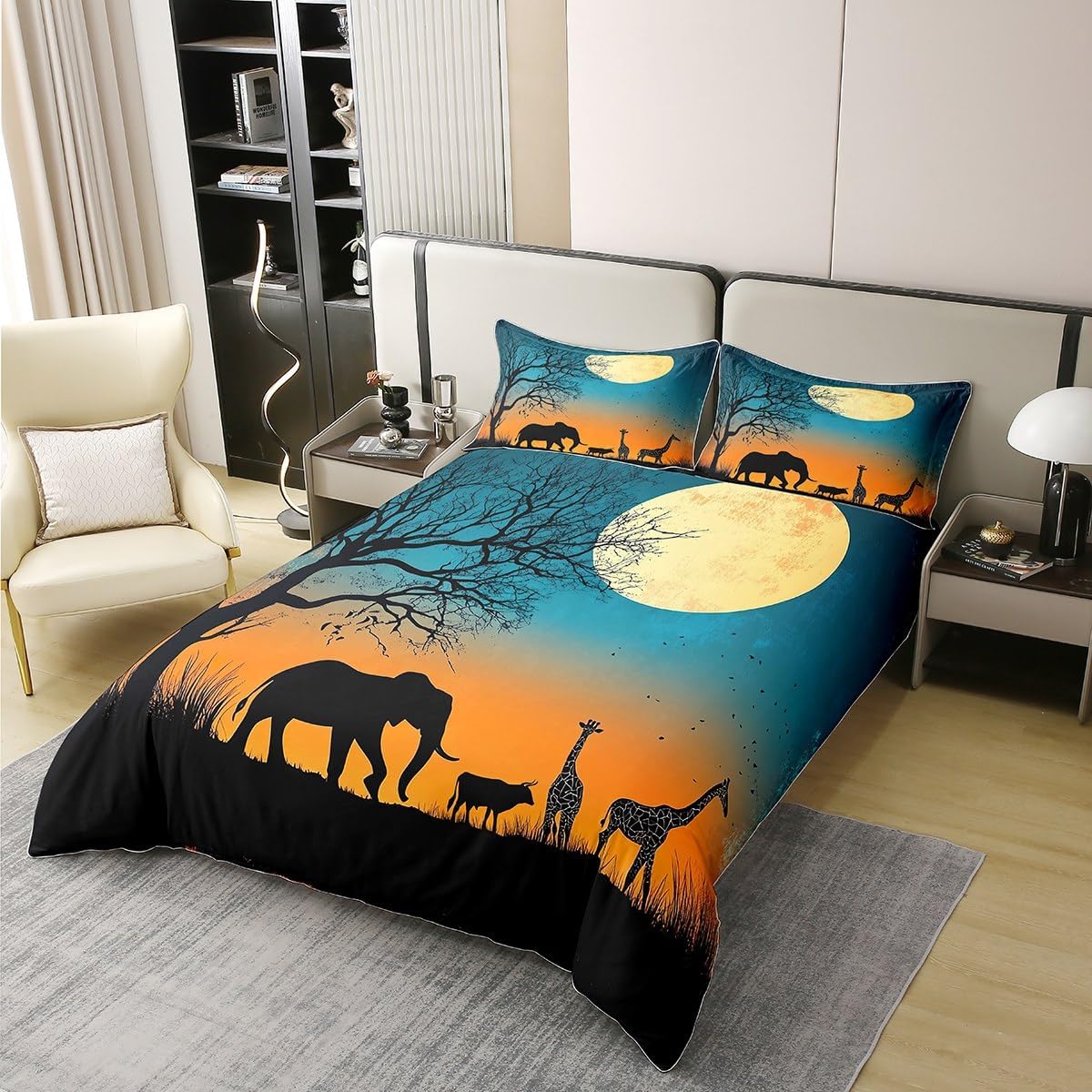 The good bedding shouldn't just give you a nice night sleep, it should also match your home decor seamlessly;What makes our bedding so uniqueUnique designs, we offer a wide selection of digital printed designs, like cabin rustic, farmhouse camping,video game, ocean beach, modern geometric, garden floral for kids, boys, girls; vivid colors and unique designs match well with your all other decor accessories; 100 Percent cotton fabric is breathable, soft with a high tensile strength which making it feel like you're being gently cuddled when you sleep inside them;Easy to care: Machine wash in cold and dries quick on tumble dry low; Range of sizes:Twin bedding 1 duvet cover: 68"x90"and 1 pillow sham:20"x30"Full bedding 1 duvet cover :79"x90"and 2 pillow shams 20"x30" Queen bedding 1 duvet cover :90"x90" and 2 Pillow Shams 20"x30" King bedding 1 duvet cover :104"x90" and 2 pillow shams 20"x36";Comforter is not included