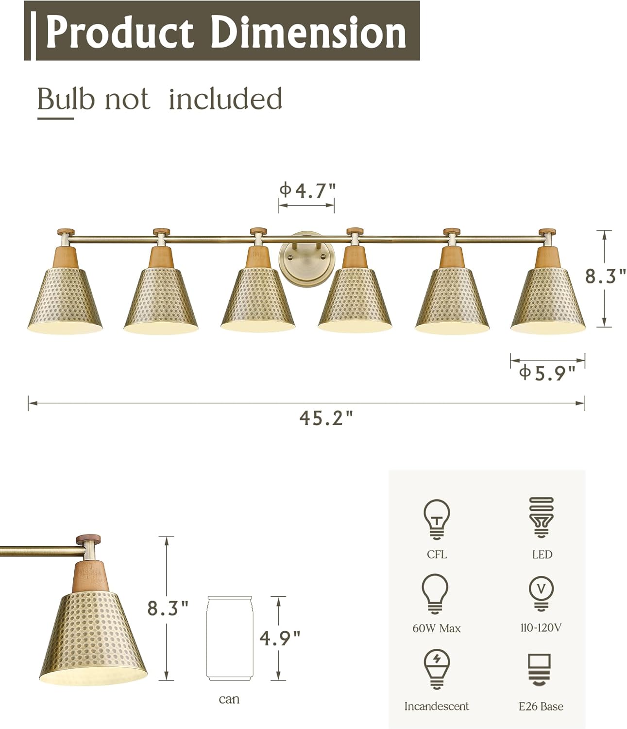 | Light Source Type | Edison bulbs, incandescent bulbs, CFLs, LED bulbs |