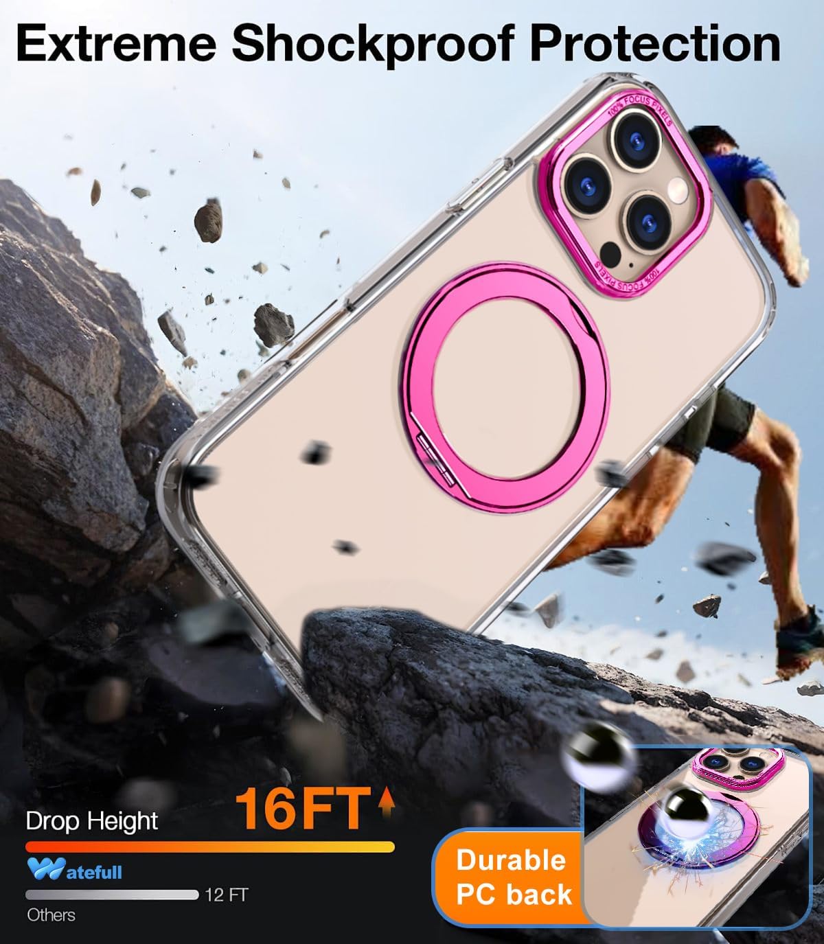 | Additional Features | 360° Rotatable Kickstand Ring Holder, Anti-Yellowing, Heavy Duty Protection, MagSafe Wireless Charging Compatible, Screen Protector |