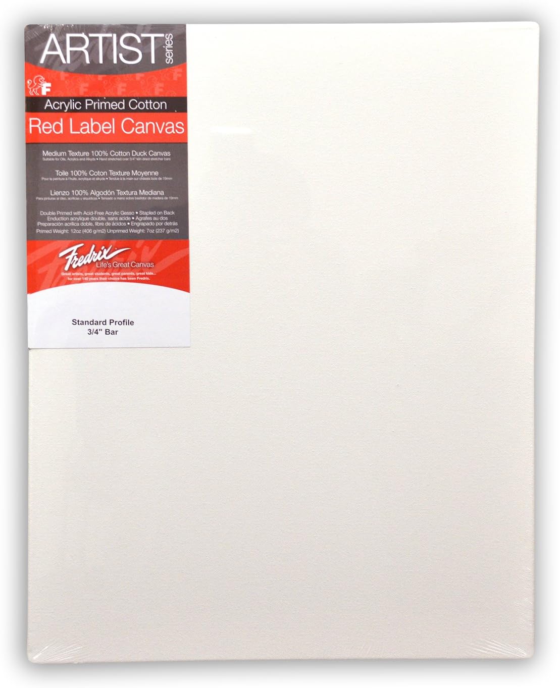 Fredrix red label canvas features the finest quality pure cotton Duck, medium textured canvas. It is double-primed with acid-free acrylic gesso for use with oil or acrylic painting. The canvas is stapled onto the back of standard stretcher bars. Paint on all four edges and hang it with or without a frame.