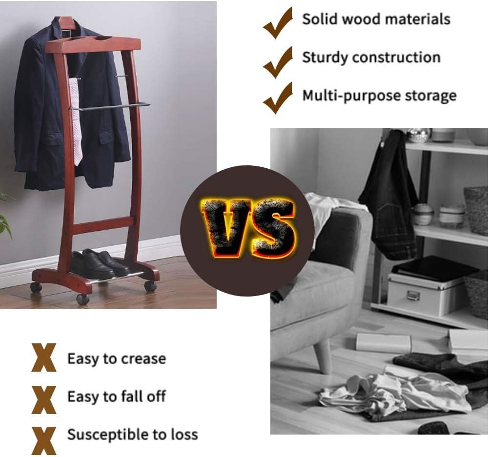 - Color: Natural wood and reddish brown - Material: Solid wood and metal - Product Size: 129x40x40cm - Product Weight: 13.6 pounds (6.2 kilograms) - Package includes: 1 x Suit Hanger Rack Our commitment to high-quality products ensures that you receive top-notch customer service and a superior user experience. Elevate your space with this stylish and functional Suit Hanger Rack today!