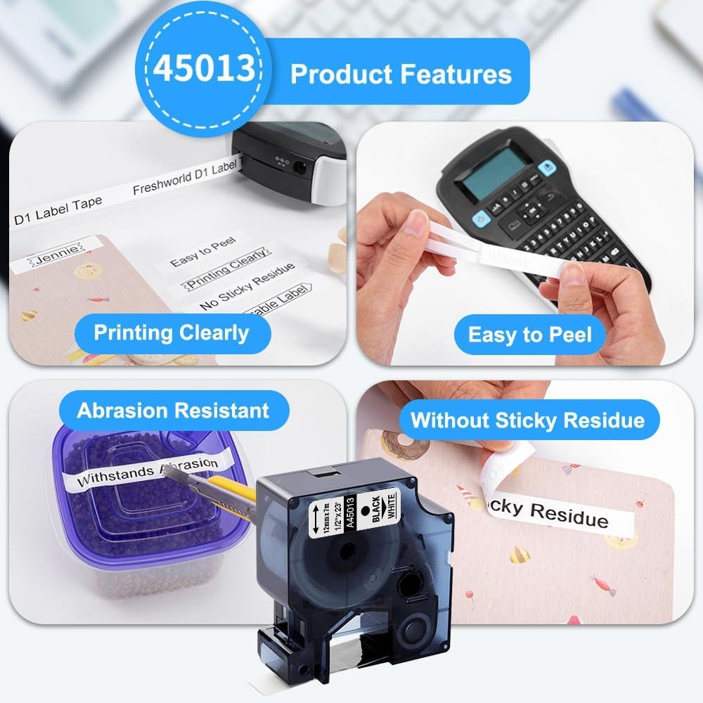 Freshworld 11-Pack Replace for Dymo D1 Label Tape Black on White(5-PK 45013 1/2inch + 6-PK 43613 1/4inch)Compatible with Dymo Label Maker Refills for Labelmanager 160 210D 220 260P 280 360D 420P 500TS