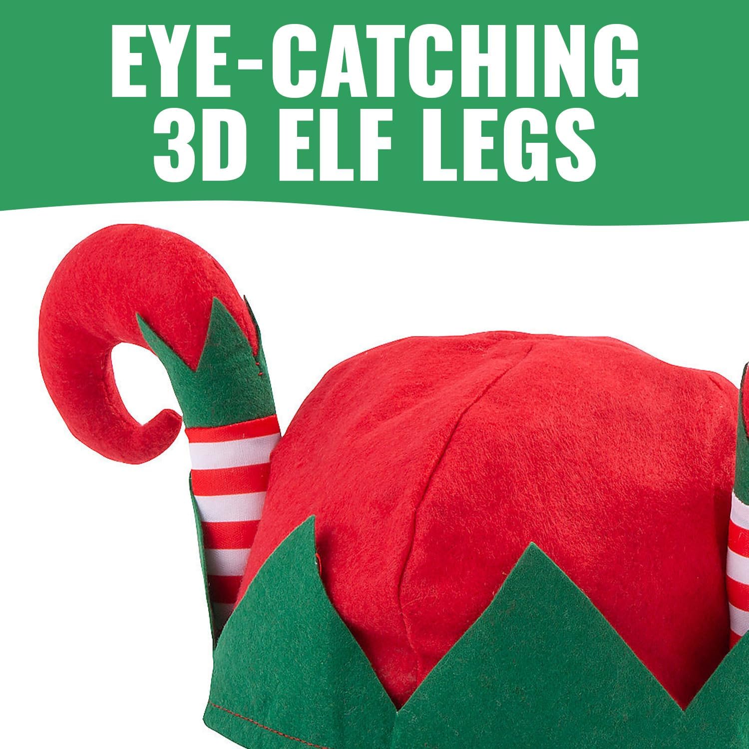 Top off the festivities with this 12-pack of 8" x 24" holiday felt hats featuring dangling elf legs. Crafted from soft felt and sized with a 24" opening, they deliver a comfortable, novelty style that photographs beautifully. Hand them out at parties, parades, and school events to create instant holiday energy, then stack them neatly after the celebration - lightweight felt keeps storage simple while the playful legs keep smiles coming.