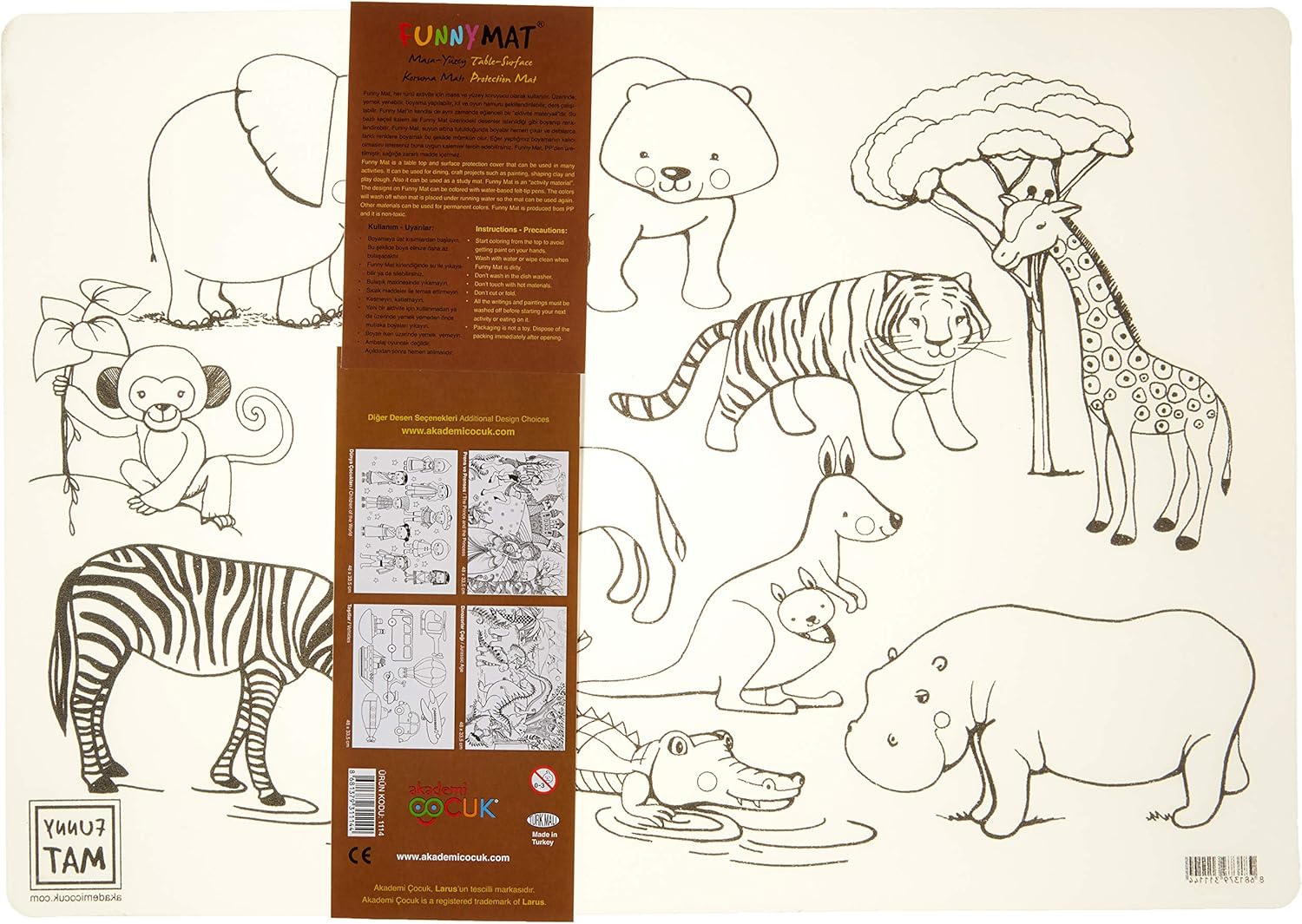 The Funny Mat is used as a table and surface protector for all kinds of activities. You can eat, paint it, shape clay and play dough and studying. Funny Mat itself is also a fun Activity Material. With the water-based marker you can paint and colour the designs on the Funny Mat as you like. When you soak the Funny Mat underwater, the paints will come out immediately and you will be able to paint them over and over again. With the Funny Mat the fun begins now! Use Tips: The Funny Mat can be washed when dirty or simply wiped clean. Avoid contact with hot substances. Not dishwasher safe. The Funny Mat is made of PP and is suitable for children use.