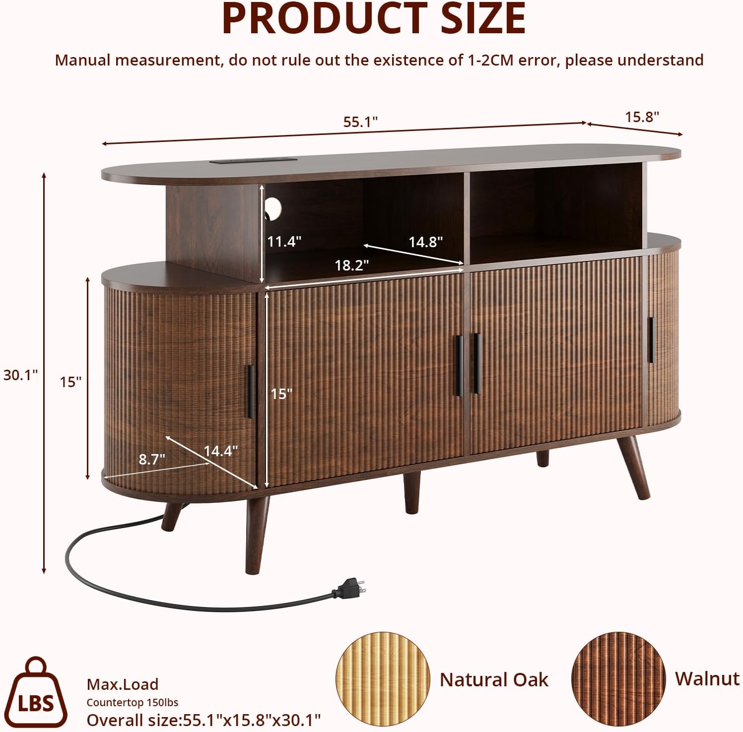 | Item Dimensions D x W x H | 15.6"D x 55.1"W x 30.1"H |