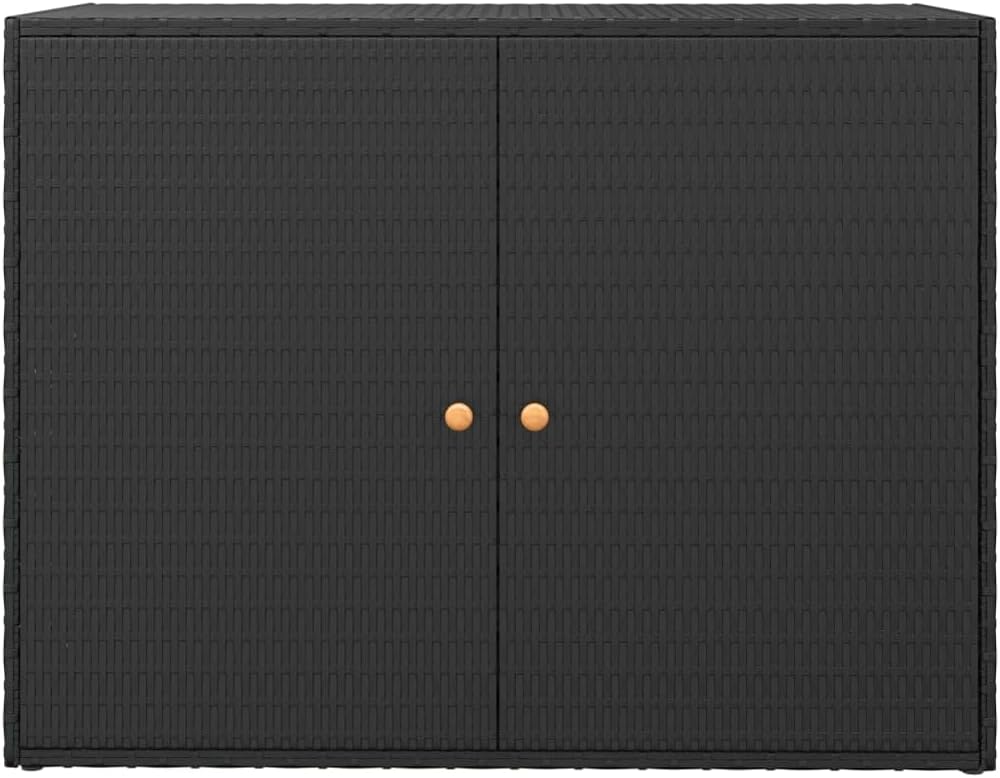 This garden storage cabinet is designed to be a decorative and practical addition to your existing decor.Durable material: Poly rattan is an material and durable in different weather conditions. It also needs little maintenance. The doorknobs are made of solid acacia wood which is dense and sturdy.Stable frame: The powder-coated steel frame ensures sturdiness and stability.Water-resistant design: Made of water-resistant material, the garden shed can withstand humidity and rainy weather. It can also be easily cleaned with a damp cloth when needed.Ample storage space: This tool chest provides ample space for organizing and storing your essential items.Note:Each product comes with an assembly manual in the box for easy assembly.Color: BlackMaterial: PE rattan, powder-coated steel, solid acacia woodDimensions:39.4" x 21.9" x 31.5" (W x D x H)