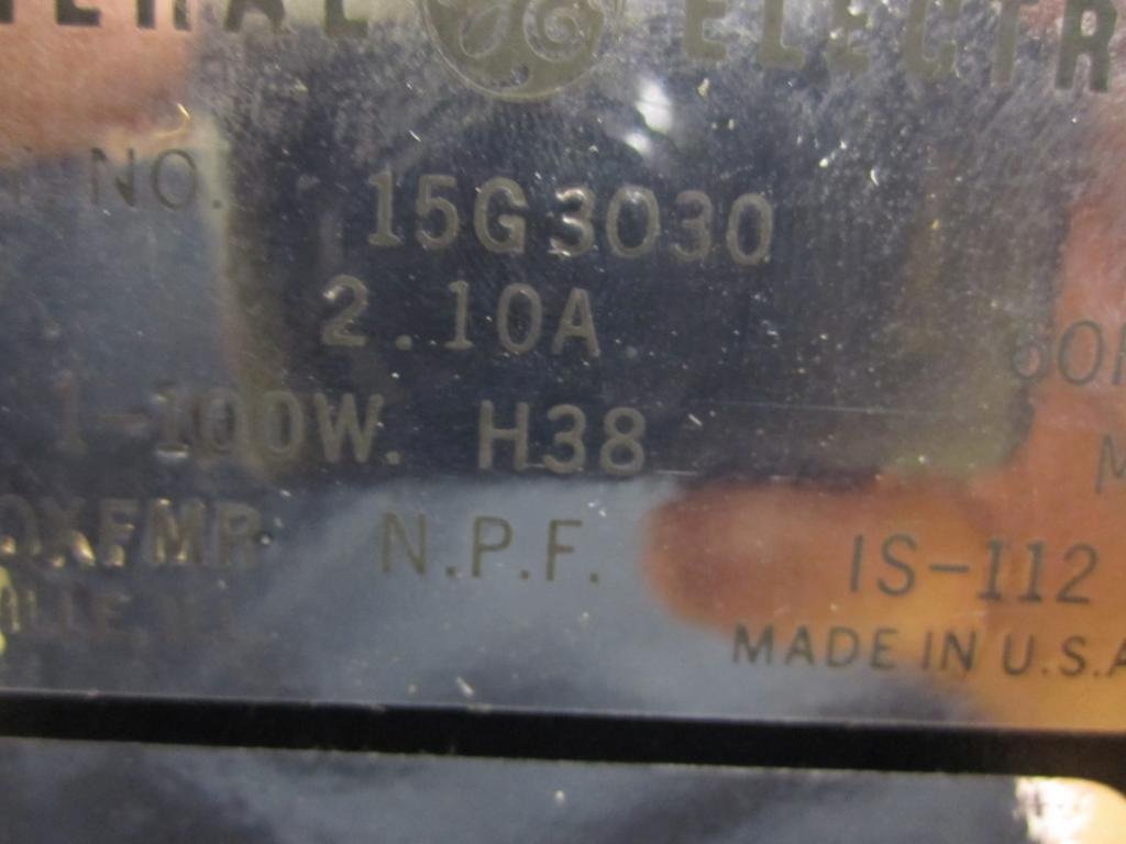 PN: 15G3030 General Electric 15G3030 Ballast 120V 2.10A. 60Hz. For 1-100W. H38 ML Autoxfmr. N.P.F. IS-112 Made In USA