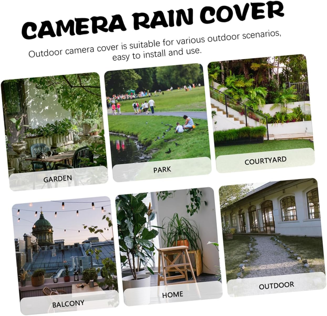 Package Include 4 x Camera Covers Features -Material:Plastic outdoor camera covers weatherproof -Color:White camera sun cover -Size:29.00X20.50X15.70cm/11.40X8.06X6.17in camera shield outdoor -The camera sun rain shade is nice to keep the camera safe and secure, and extend lifespan for camera camera cover for outdoor. -The installation process is simple, making it easy for anyone to use and set up in no time security camera cover. -This camera rain cover provides reliable protection against harsh weather conditions that could damage your outdoor camera outdoor camera shield housing. -Compatible with a wide range of outdoor cameras, making it a versatile and practical accessory for any security setup ring camera shelter. -Made with plastic, this camera cover is designed to withstand the test of time and provide protection for your camera camera covers.Goods Informationcamera sun cover Its sturdy construction ensures that it will last for years to come, nice to keep their camera safe and secure.security camera shelter Whether you are monitoring your home or business, this protective cover will protect your camera from rain, sun, and other harsh weather conditions.outdoor camera covers weatherproof The camera rain cover is for use in outdoor environment