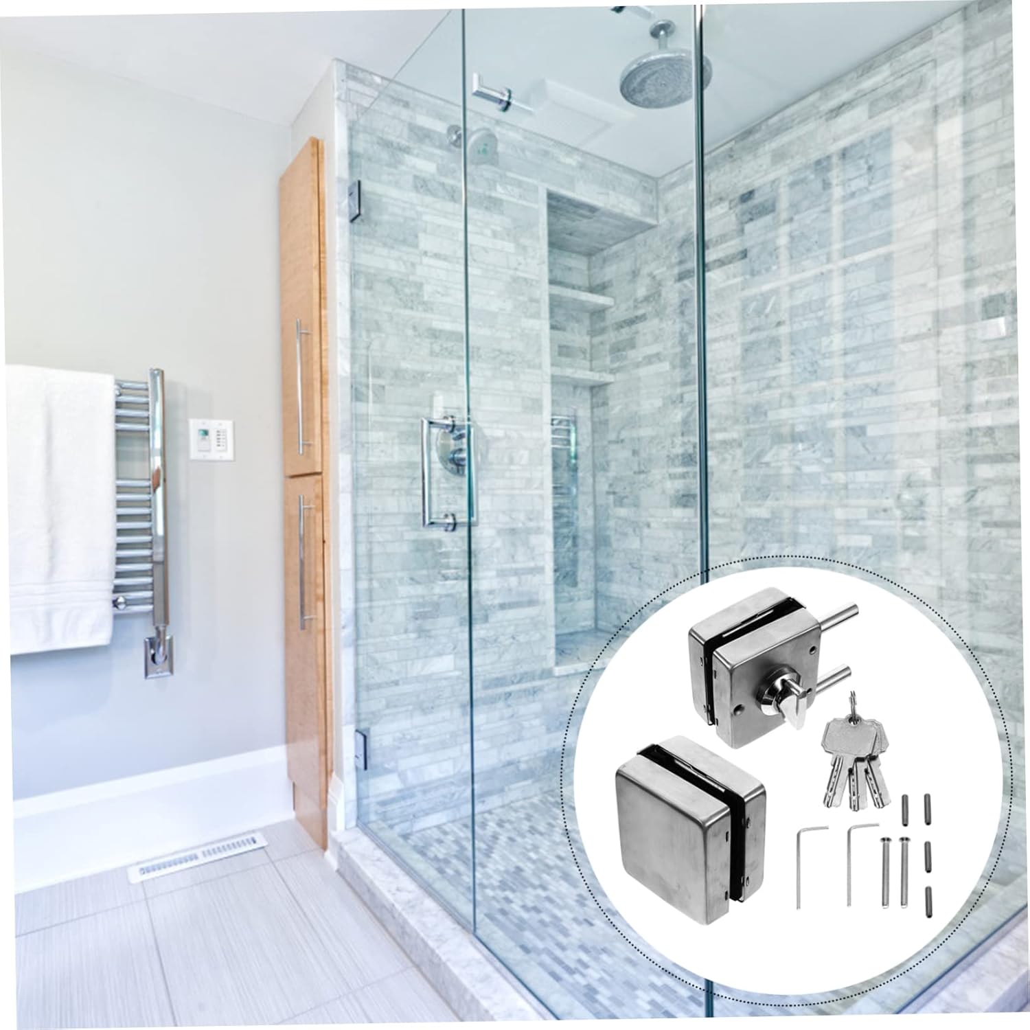 Package Include 1 x door lock Features - Size: 15.50X9.50X8.00cm/6.09X3.73X3.14 inch Stainless Steel Gate Hasp. - Color: Silver Frameless Gate Hasp. - Material: Stainless steel Frameless Glass Door Lock. - The workmanship will give you an excellent use experience Glass Door Stainless Steel Latch. - This glass door lock is very easy to install, giving you much convenience Glass Door Latch. - The surface is polished so that it won't hurt your hands, very safe to use Glass Door Lock. - The product is in a simple design, but very useful and practical Frameless Glass Door Hasp. - Made of great material, durable and safe for use Glass Door Stainless Steel Hasp.Goods InformationGlass Door Stainless Steel Hasp It is one of for you.Stainless Steel Gate Lock Are you looking for a , yet glass door lock? Are you in search of a sturdy, trustworthy that can do multiple works at once? , ! Our glass door lock must meet you needs