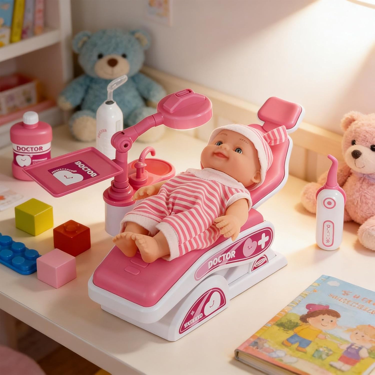 Dentist set for girls is a realistic and engaging educational toy designed to inspire creativity and support child development. As an educational tool, this toy encourages role-playing activities that are ideal for daycares, preschools, elementary schools, or home use. Help children explore the world of medicine during morning playtime, leisure hours or family time, promoting social and cognitive skills. Ideal for , school events, or everyday activities, this set offers endless opportunities for interactive fun while promoting hands-on learning experiences. Designed to empower imaginative play, the dentist set for girls ensures a meaningful and fun way for kids to learn and grow. Specification Product material: ABS Product weight: about 600g Product size: as shown List dentist set x1 Note: 1. Due to lighting effects and viewing angles, there may be color differences in the product. 2. Due to manual measurement, there may be errors in the product size, please understand.