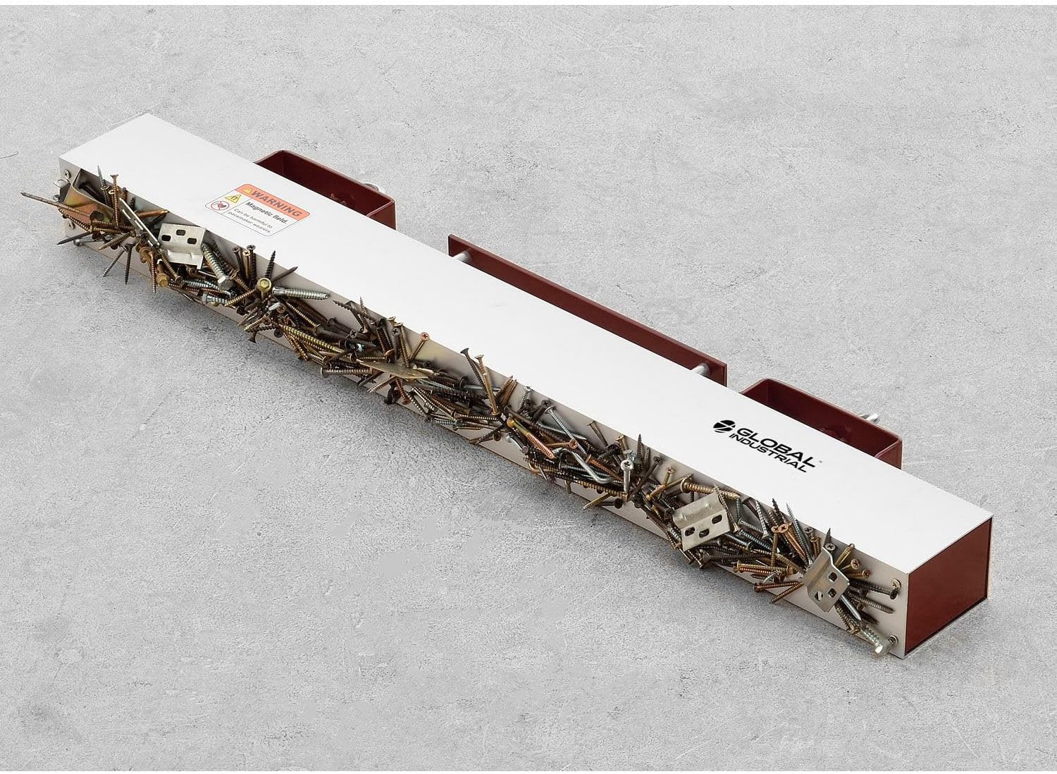 Simple-to-use magnetic sweeper automatically picks up steel objects to provide an alternative solution to brush sweepers, vacuums and power sweepers. Not affected by rain, dust or temperature. Can be used over asphalt, concrete, grass and gravel. Eyebolts allow easy hanging from nearly any vehicle (chains not included). Features fork pockets for easy forklift attachment. Made with heavy gauge steel and aluminum. Magnetic sweepers easily mounts on vehicles and forklifts in under a minute. Magnetic sweepers help reduce tire repair costs by getting rid of tire damaging steel, nails, wire, screws and other metallic debris. Removes shard objects from highways, parking lots, airports, runways and more. , Lot of 1