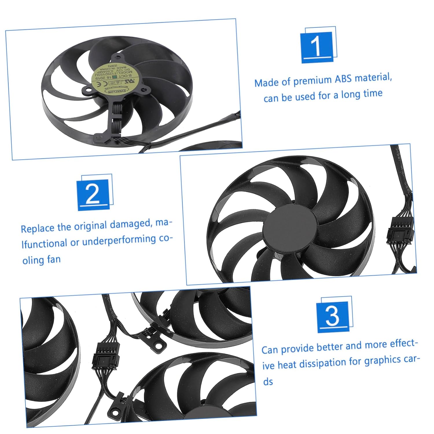 Package List 1 x set of GPU coolers Features Power Connector: 7-Pin, 6-Pin, 4-Pin graphics card fans -Product Info:Graphics card cooling fan Voltage: DC 12V GPU Cooling Device -Material: Fan - Solid and sturdy enough to withstand heat paste corrosion and deformation Cooler Fan. - Using the theory of , high-performance wind wheel and volute, ensure the silent operation of the motor gpu fan. - Let out heat quickly from the bottom, prevent computer from overheat and damage Cooling Fan. - Made of premium ABS material, fan can be used for a long time Radiator Fan. - Helping to bring out heat from your computer with this cooling fan GPU Cooling Fan.Goods InformationGPU Cooling Fan This is a very practical graphic card cooler.graphics card fans The craftsmanship can serve you well without breaking easily.GPU Air Cooler The graphic card cooler is convenient and practical, with excellent texture, and without being easily damaged