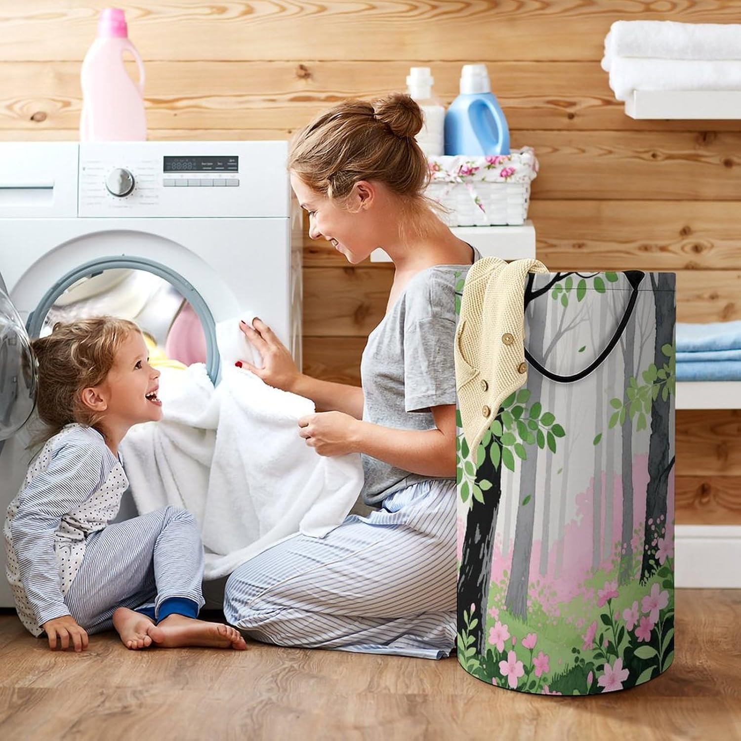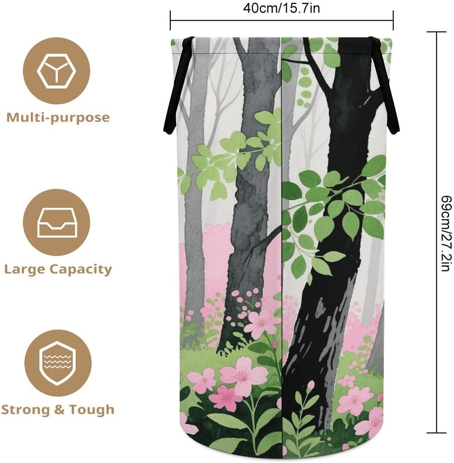 The pattern of the Gray Black Pink Green hamper is printed with exquisite patterns, which makes the product more attractive.Chic design allows it to be used in the living room to hold throw blanket, pillows, and reading materials, as well as in the bathroom for towels, or as a laundry hamper.The laundry hamper adopted collapsible design, equipped with handles. It is lightweight and portable for using, storing, and moving conveniently.Gray Black Pink Green Clothes hamper is suitable to store dirty clothes washing, place in the room to store toys, and other household goods, keep the house clean and tidy. Perfect laundry hamper for home, office, closet organizer, bedroom, bathroom, college dorm, etc.Gets out of your way when you need it to. This storage basket or laundry hamper is a good gift, which not only meets everyday storage needs but also carries deep care and love, a perfect way to turn thoughtfulness into warmth.