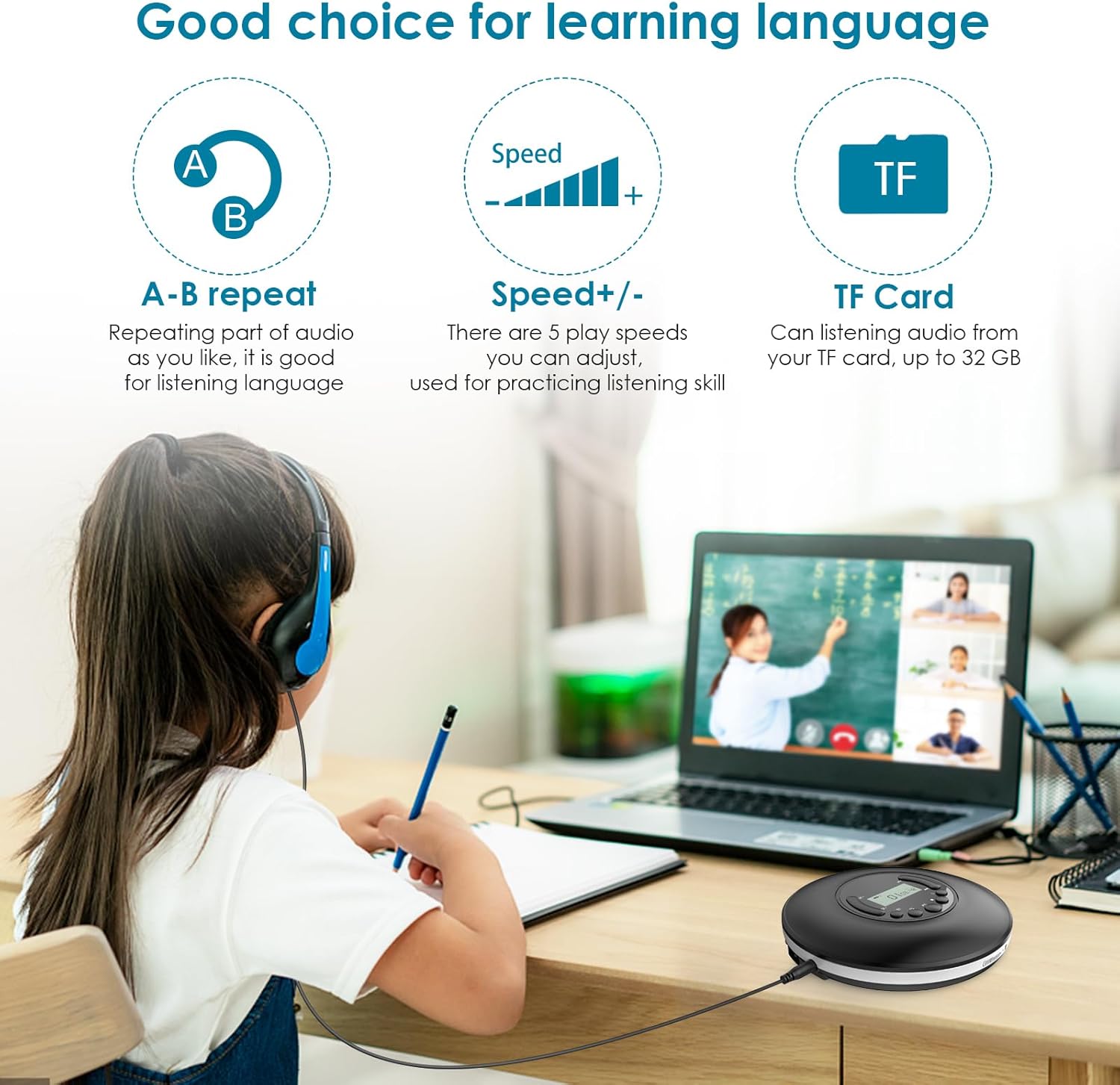 Bluetooth CD player: This Bluetooth CD player with LCD display, you can share your music with your family and friends. In addition, a headphone jack provides more privacy. With the latest Bluetooth 5.0 technology provides a wider signal area, faster connection and transmission speed. You can connect it to your speaker, headphones or any other Bluetooth device with Bluetooth receiver.