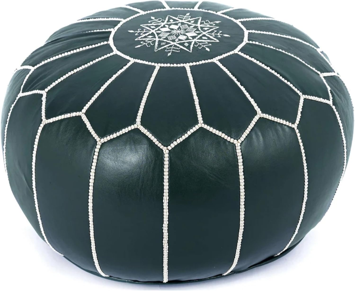 Transform your space with the timeless charm of a handmade Moroccan leather pouf ottoman. Soft yet sturdy, it brings a touch of Arabic artistry and effortless bohemian warmth to any room. Perfect by the sofa as a footrest, styled as a floor cushion around the coffee table, or even as casual seating on the patio, this pouf blends comfort with authentic design. Every piece is individually hand-embroidered by skilled artisans in Marrakech, making each pouf uniique. The natural leather, carefully tanned and stitched, carries subtle variations in tone and texture that add depth, personality, and cultural richness to your décor. Crafted from eco-friendly, sustainably sourced leather, this pouf is not just décor but a lasting heirloom. Strong stitching ensures durability, while proper care allows it to age gracefully, developing a rich patina over time. Product Highlights: Handcrafted from 100% genuine Moroccan leather Embroidered and stitched by artisans in Marrakech Measures approximately 20″ in diameter (≈50 cm round) Sustainable, eco-conscious, and built to last