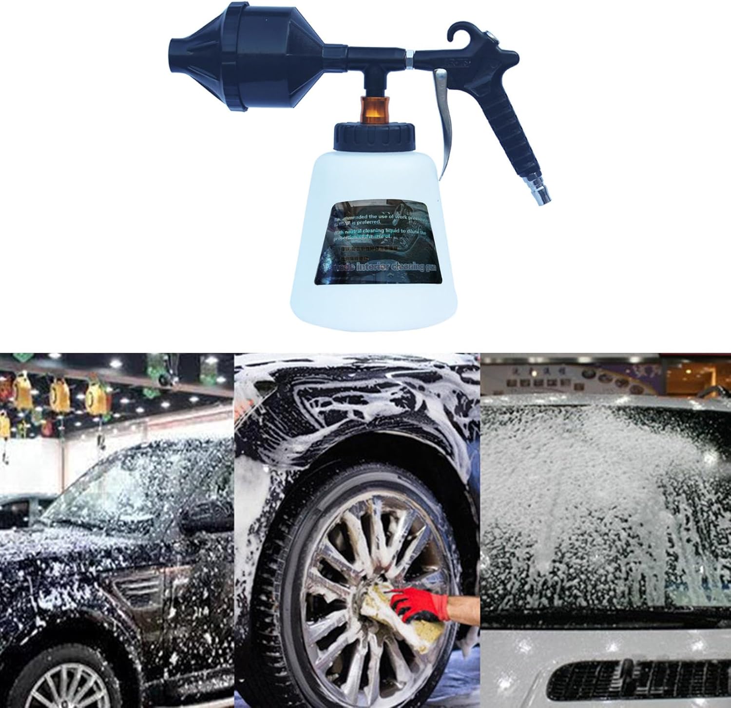 Features: Professional foam sprayer with high pressure & aluminum alloy construction for effortlessly car detailing. Features reinforced aluminum alloy handle, and leak proof seal for reliabled performances under extreme pressure. Essential tool for car enthusiasts, professional detailers, and DIYers requiring precise for vehicles and outdoor surfaces. Optimized for engine bays, wheel arches, boats, and driveways, works seamlessly with pressure washer attachments for dense, long lasting foam. Ergonomically designed trigging guard and airflows regulator ensuring easy operations while maximizing foam adhesion and stain removal efficiency. Specifications: Component:Plastic+aluminum alloy Product usage temperature: 10-40° Liquid: Car wash liquid Technical parameters: air pressure 7-9KG Kettle capacity: 1L Note: 1.Please allow 1-2cm errors due to manual measurement, make sure that you donot mind befores you order. 2.Due to the differences between different monitors, the picture may not reflect the actual color. Thanks for your understandings. Package includes: 1pcs Foam Sprayer