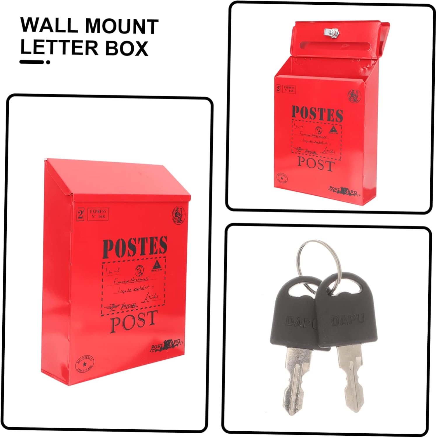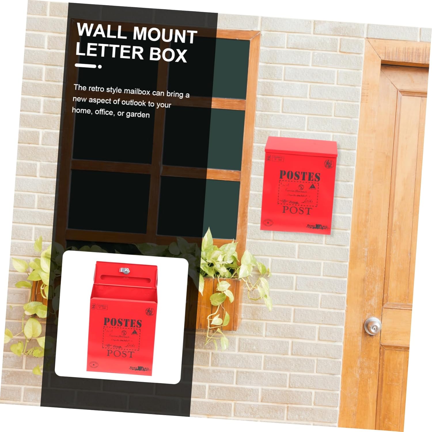 Package Include 1 x Wall Mount Letter Box Features -Color:Red Office Suggestion Box -Size:29.00X22.00X6.50cm/11.40X8.65X2 Mailbox Locking. -Material:Iron Wall Mount Post Box -Vintage style with decorative letter patterns, this mailbox is a decoration for your home Locking Post Box. -Made of iron material and with fine craftsmanship, the mailbox can be durable and strong Rustic Style Mailbox. -The retro style mailbox can bring a new aspect of outlook to your home, office, or garden Vintage Post Box. -Suitable capacity for envelopes and mails. Meet your needs for daily correspondence Retro Letter Box. -You can install it on the wall or just place as you wish according to your needs Vintage Letter Box.Goods Informationvintage mailbox The simple printed letters design makes it more unique and stylish.hanging wall decor The product is well polished, no burrs and does not hurt hands when used.retro decor Suitable capacity for storing envelopes, newspaper, letter of complaint.Mailbox Locking Made of high-end iron material, the mailbox is durable with looking